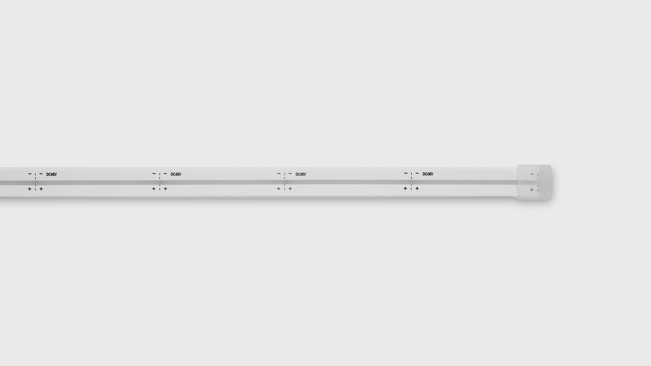 Notable for high light transmission, can be used for illumination of signs, in interiors, and for exterior decoration of facades and architectural elements of buildings. 12 W capacity. Available in increments of 25 mm. 48V connection. Low voltage, safe.