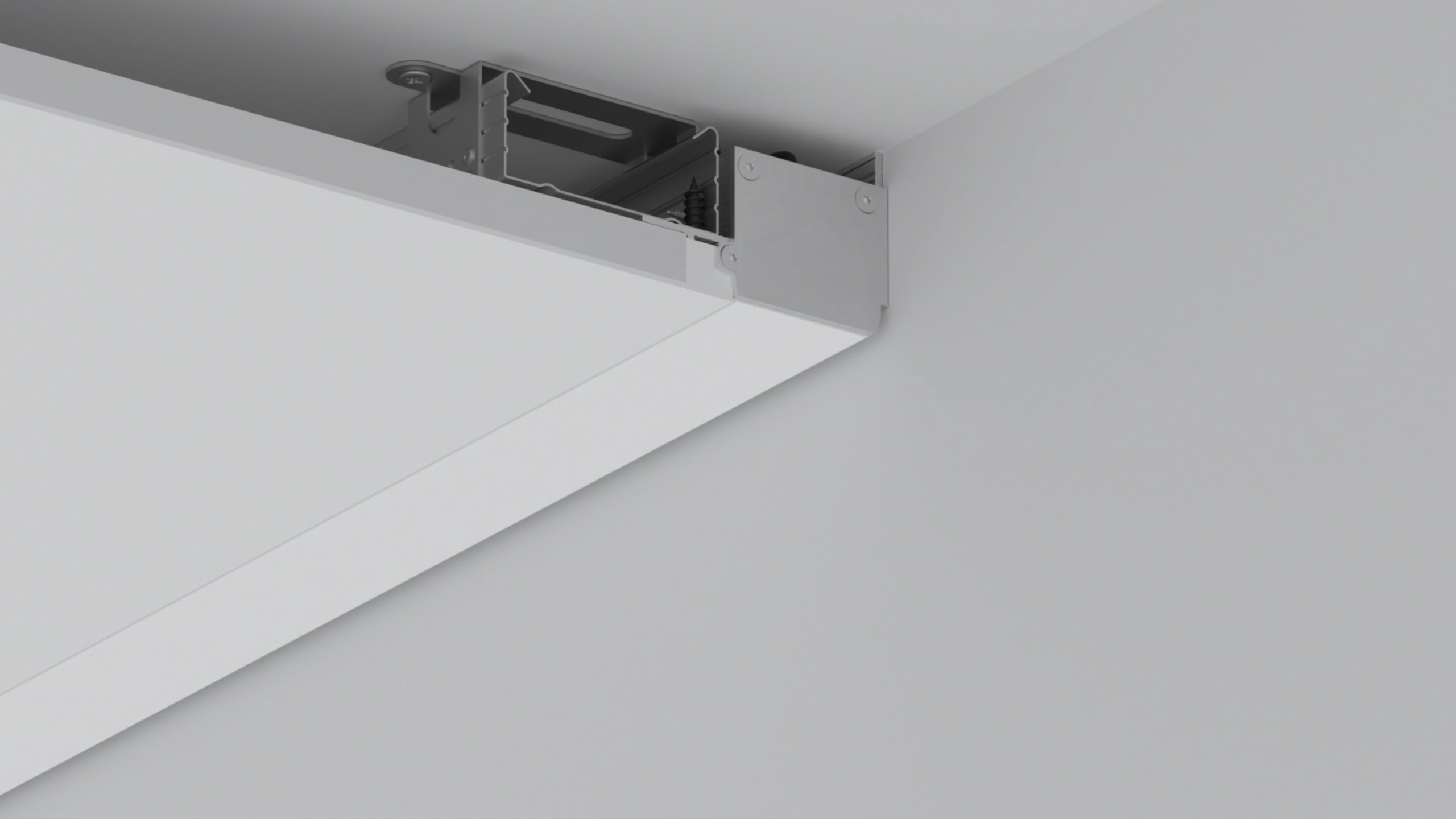 Recessed trimless profile system. The width of the line of light is 40 mm.