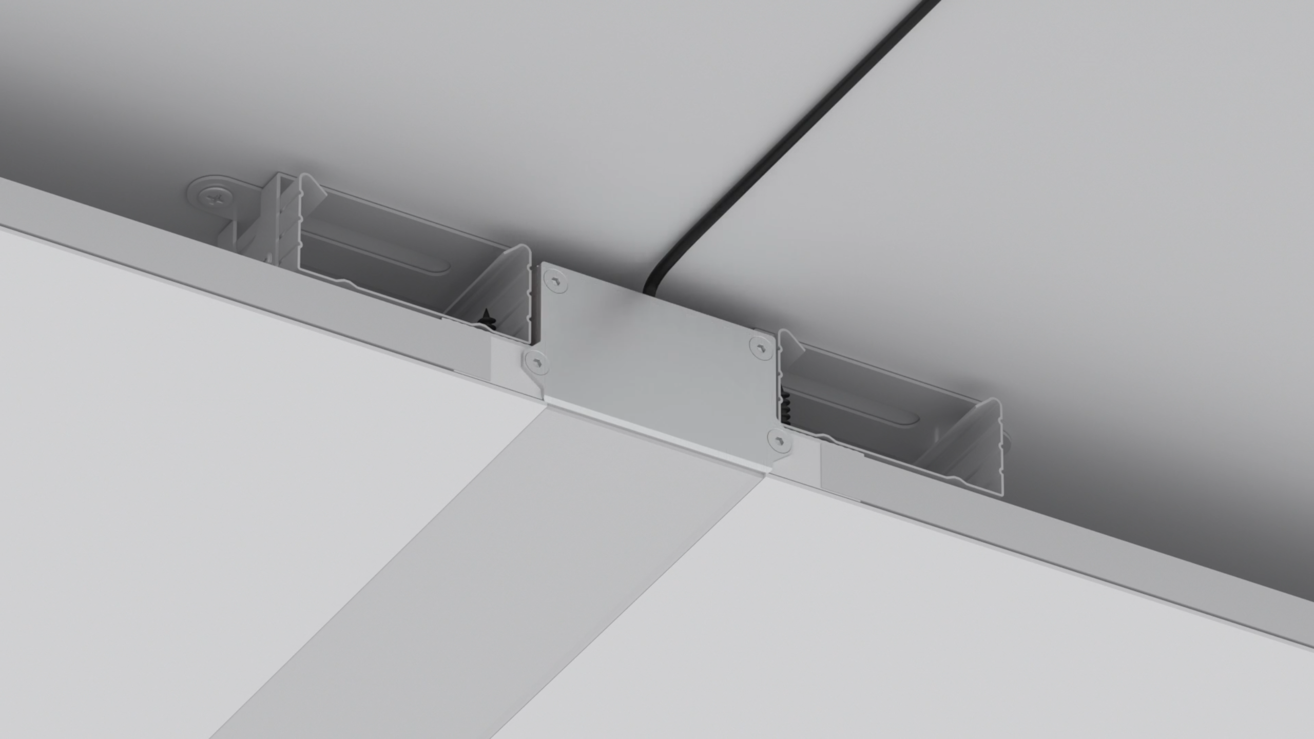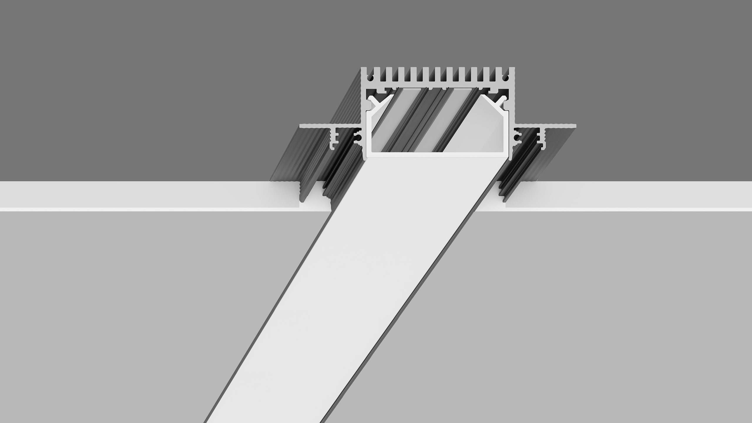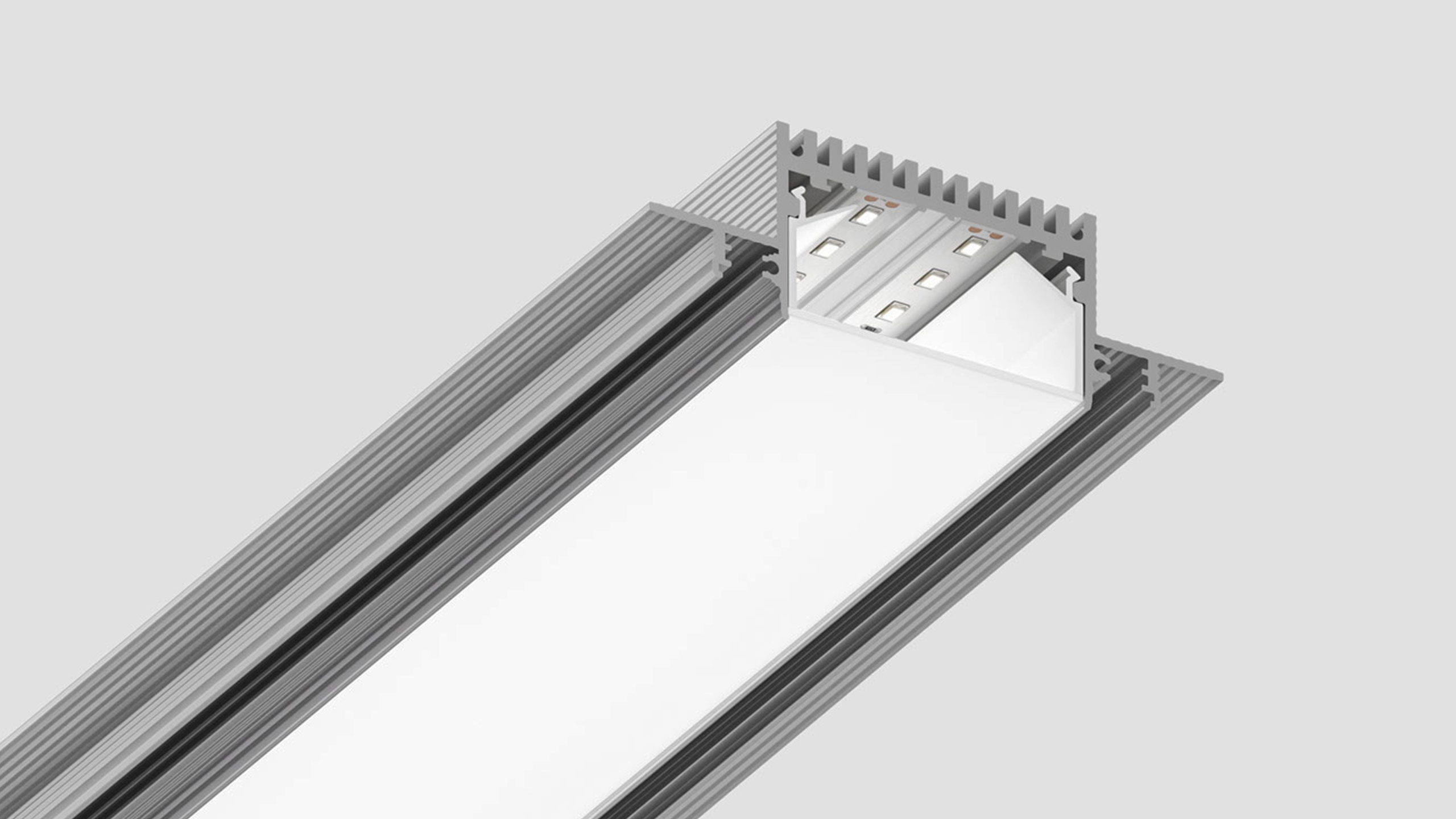 Recessed profile system with no visible trim. The width of the light line is 60 mm.