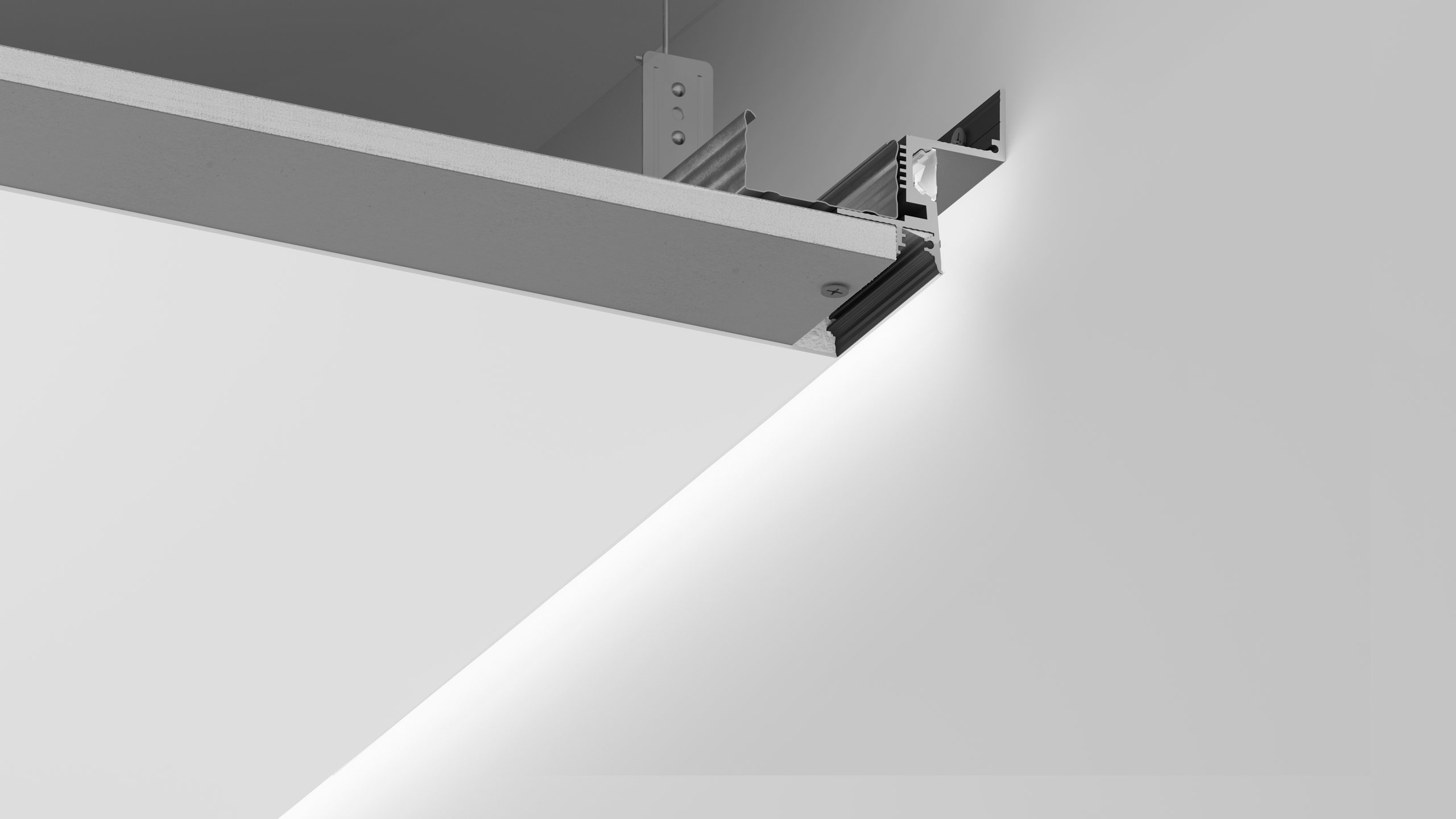 Rectangular profile for cornice lighting. Creates a soaring ceiling effect and visually enlarges the space.