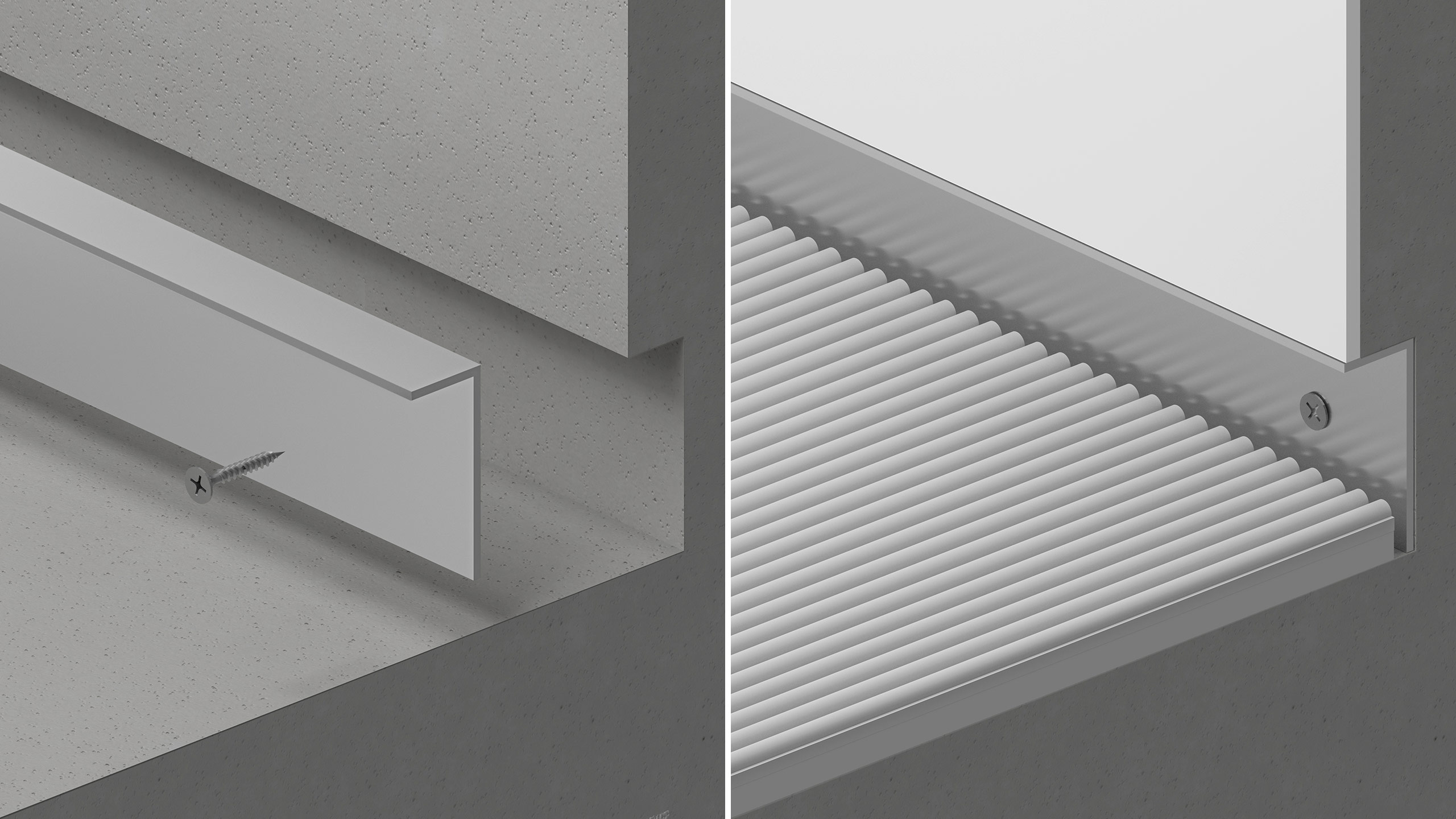 Recessed mounting of the skirting allows to put the furniture right up to the wall.