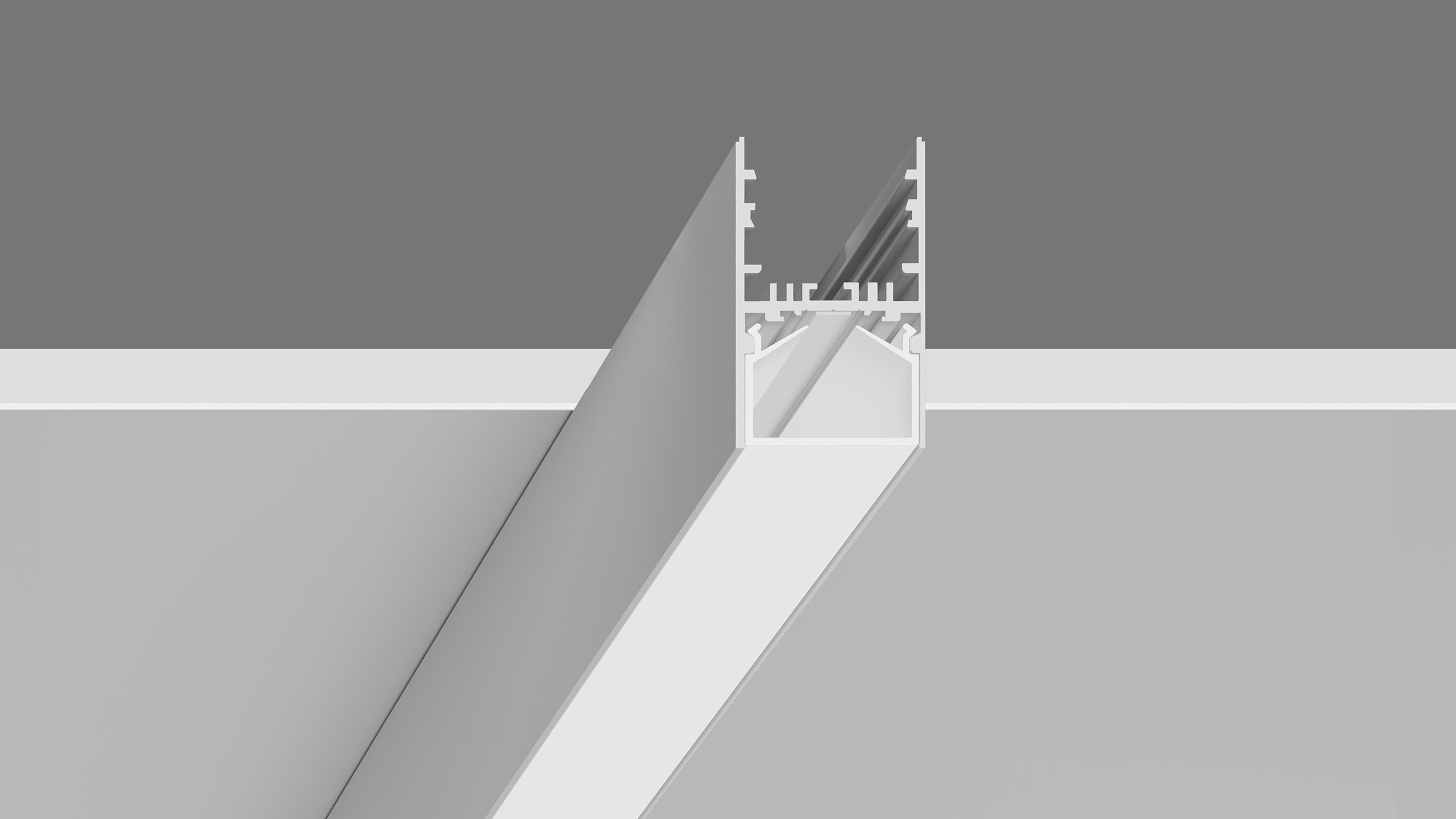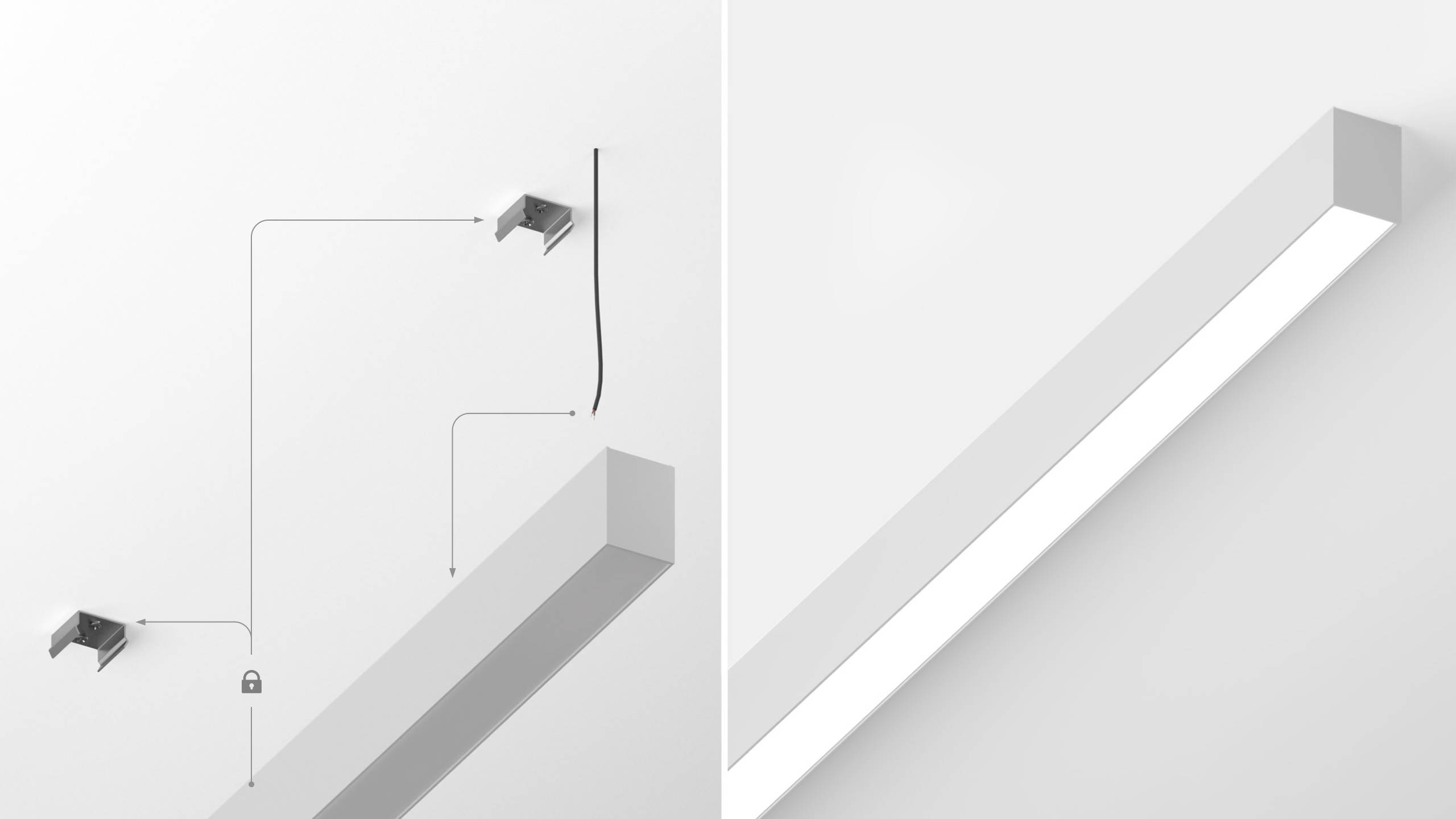 Surface-mounted profile, 65 mm height. The width of the line of light is 40 mm.