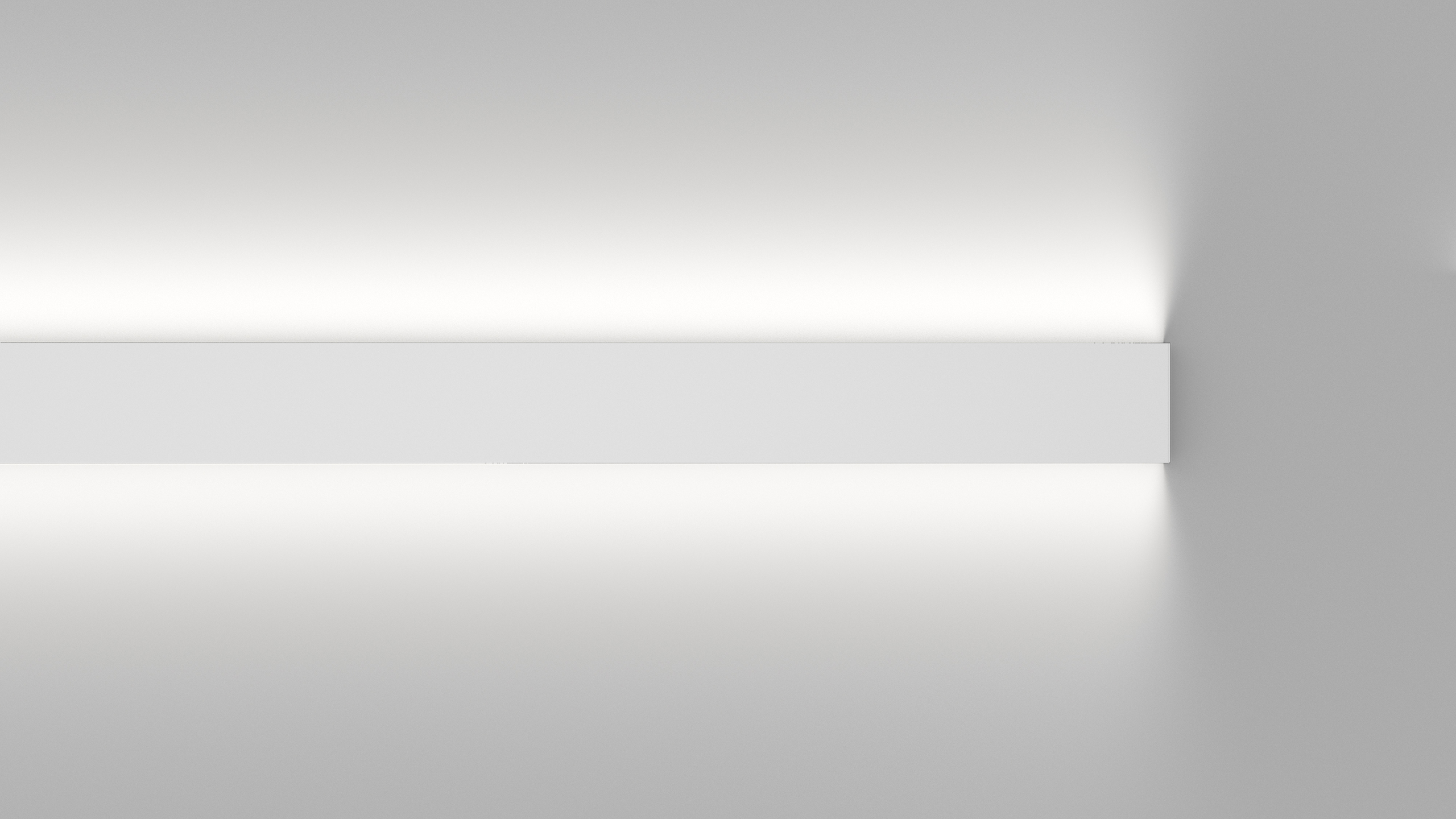 Wall-mounted profile system. Flat housing: the height of the profile is just 23 mm. Easy mounting. No limitations to the length, 100 mm spacing. Available in increments of 2.5 meters. Optionally, an LED strip and a power source can be installed into the profile.