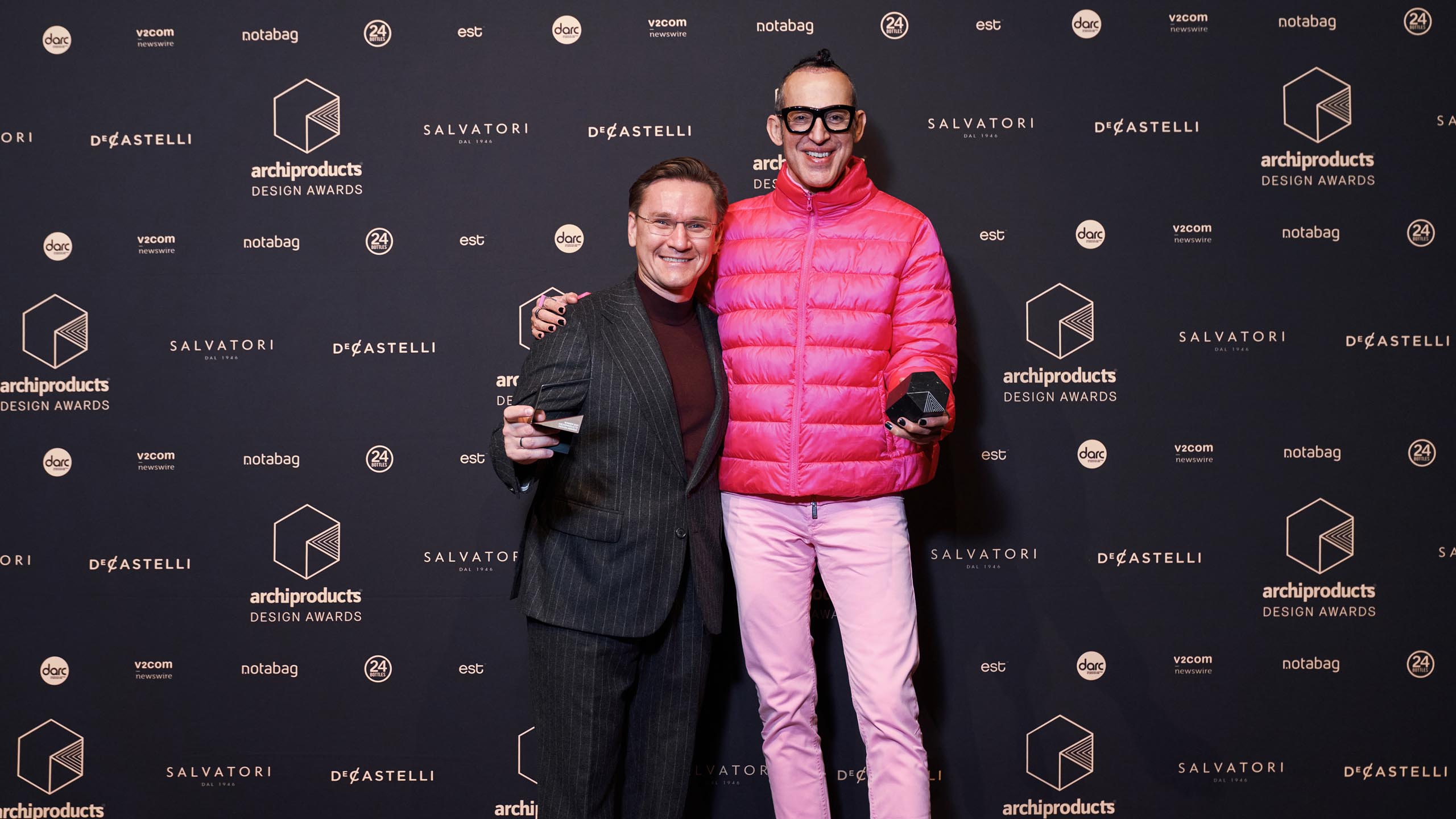 Luminaires are made of 100% brass in black or pink shades.