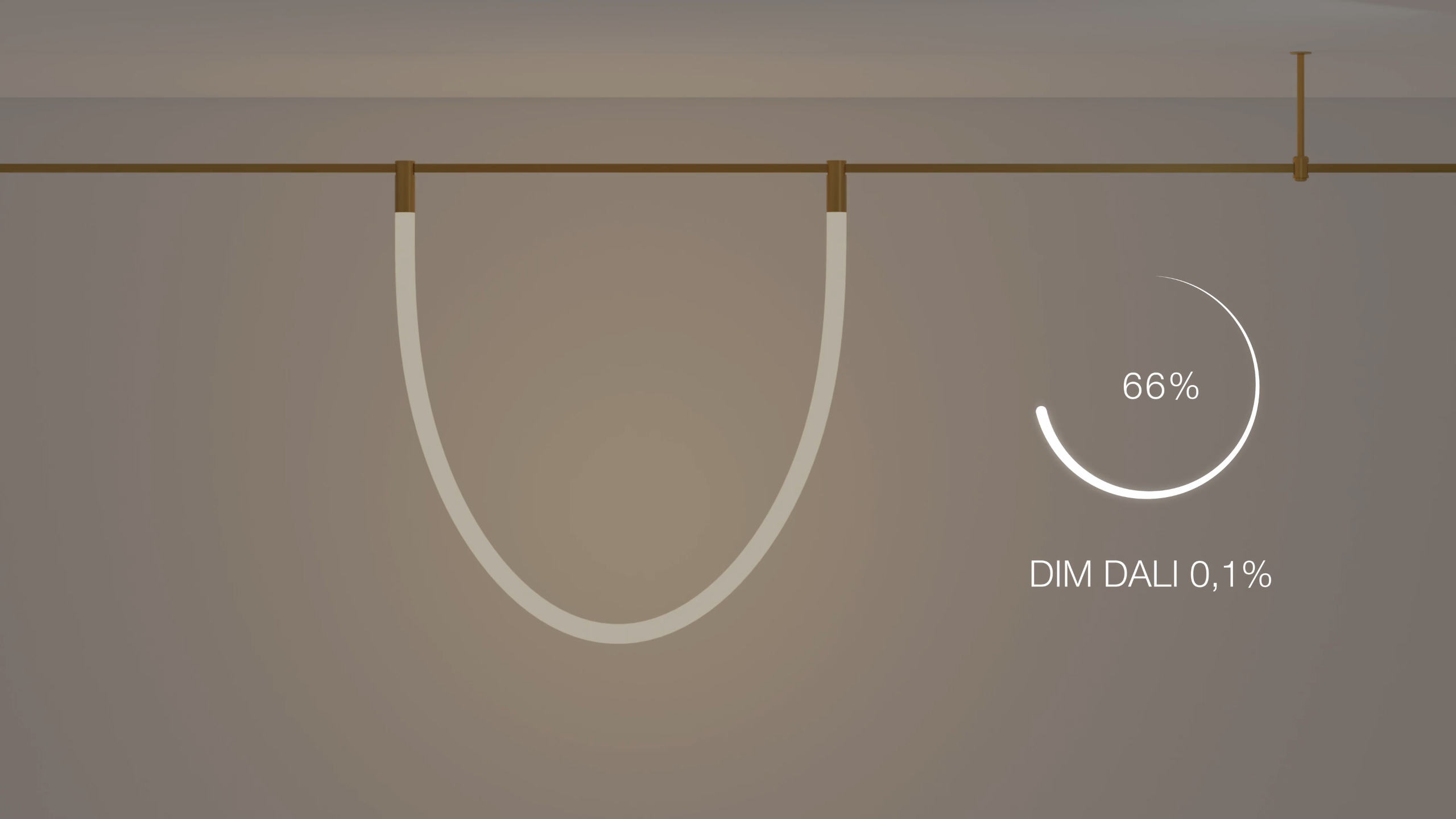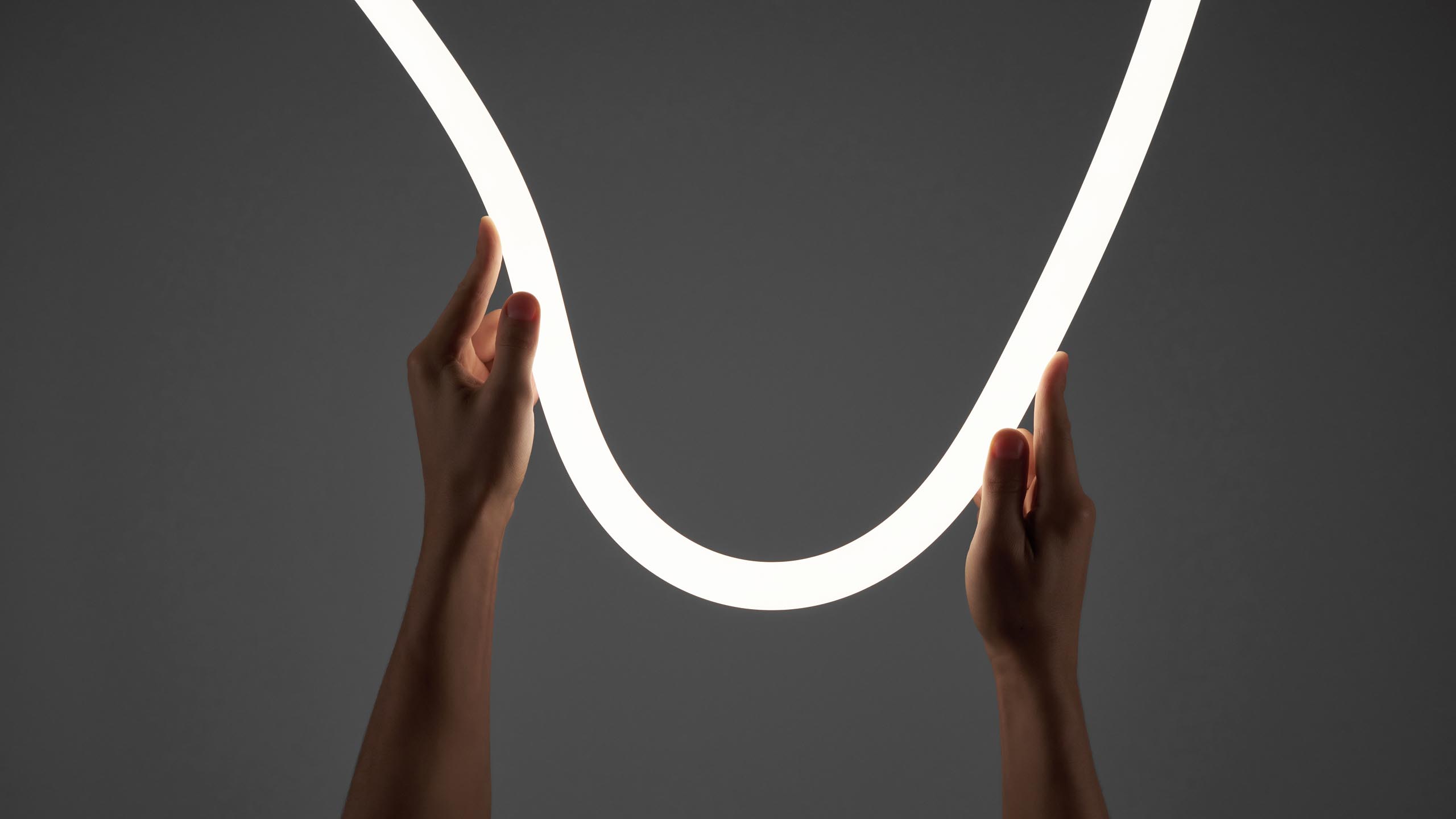 Cylindrical track luminaire made of flexible neon for AUROOM system. The luminaire produces light with its entire surface, 360° beam angle. 2 m length.