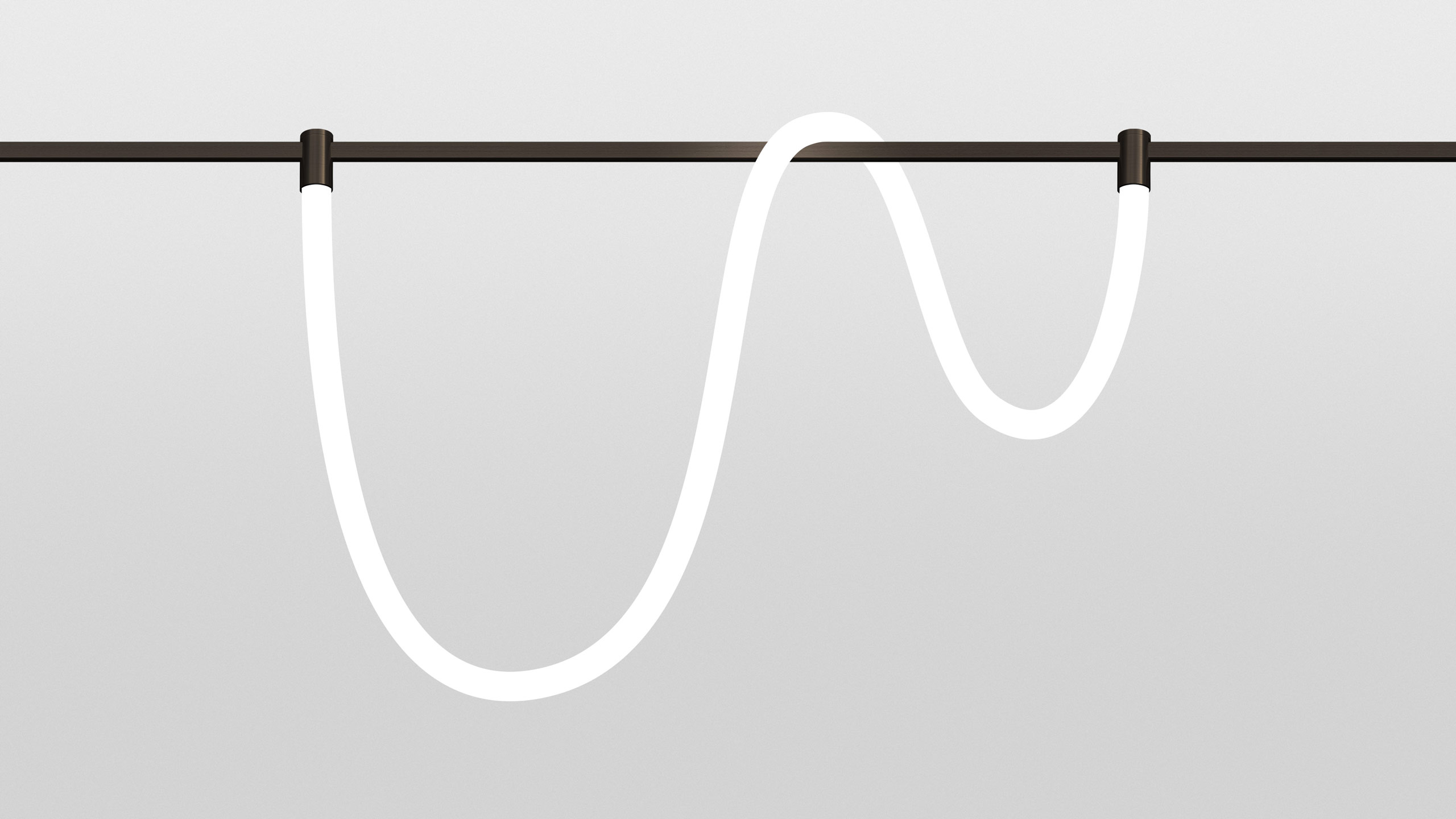 Cylindrical track luminaire made of flexible neon for AUROOM system. The luminaire produces light with its entire surface, 360° beam angle. 3 m length.
