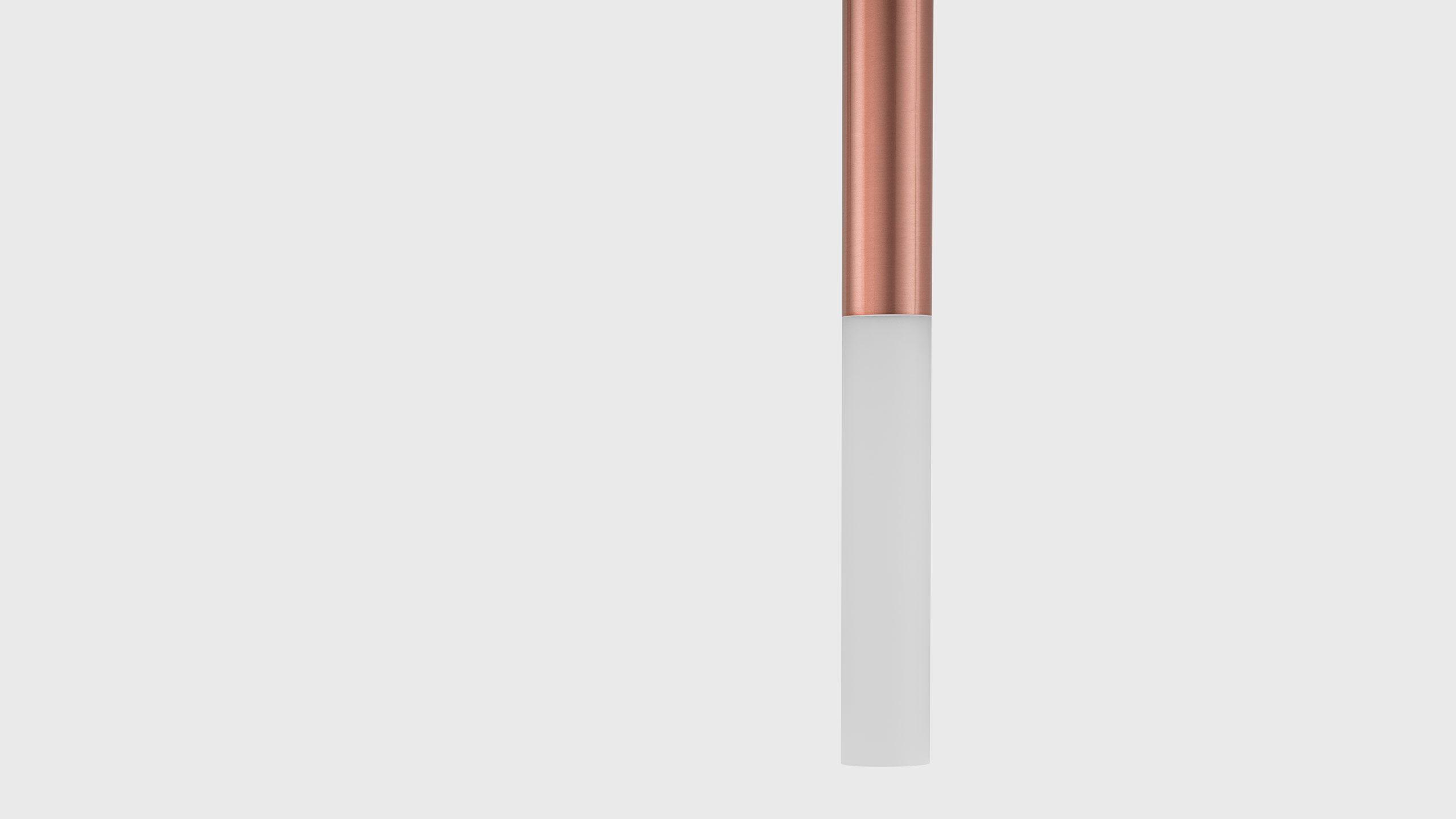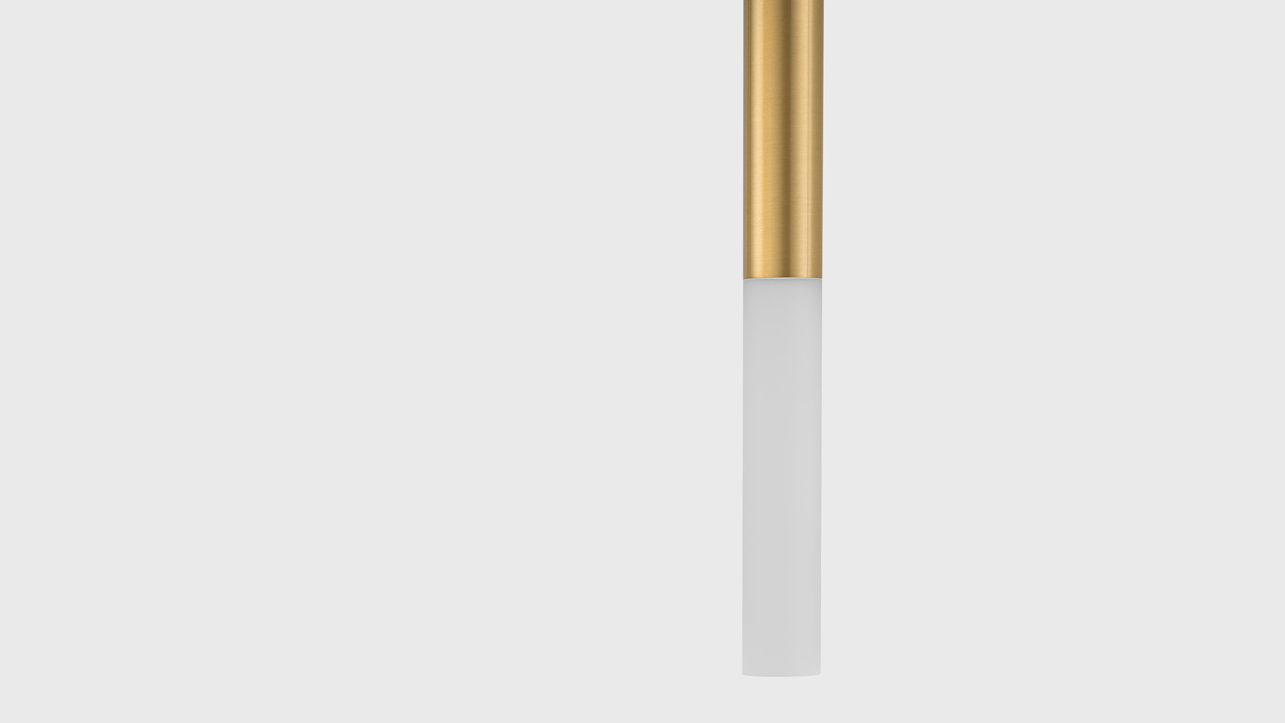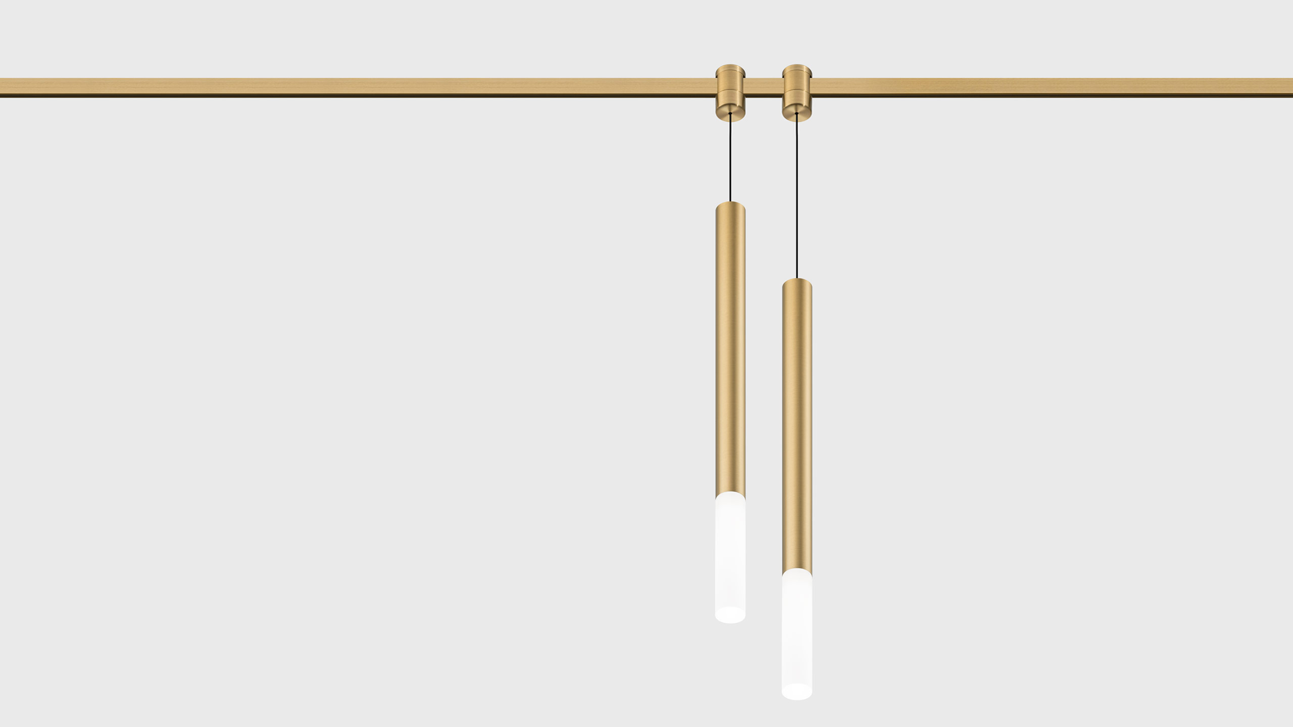 Miniature pendant track luminaire with a diffusing decorative cover. Made of pure brass. Just 30 mm in diameter. Narrow 24° beam angle allows to create lighting accents.