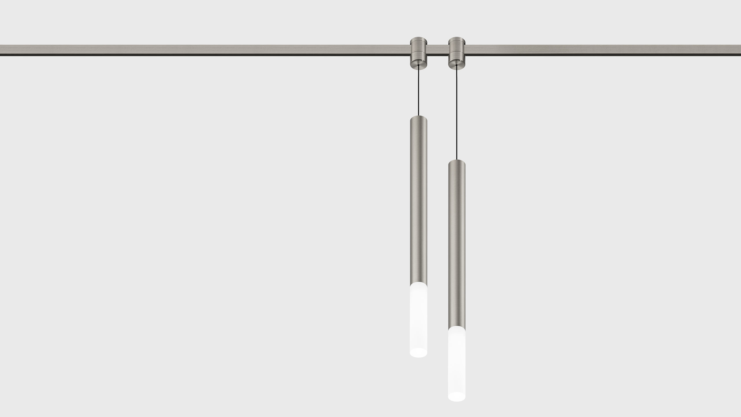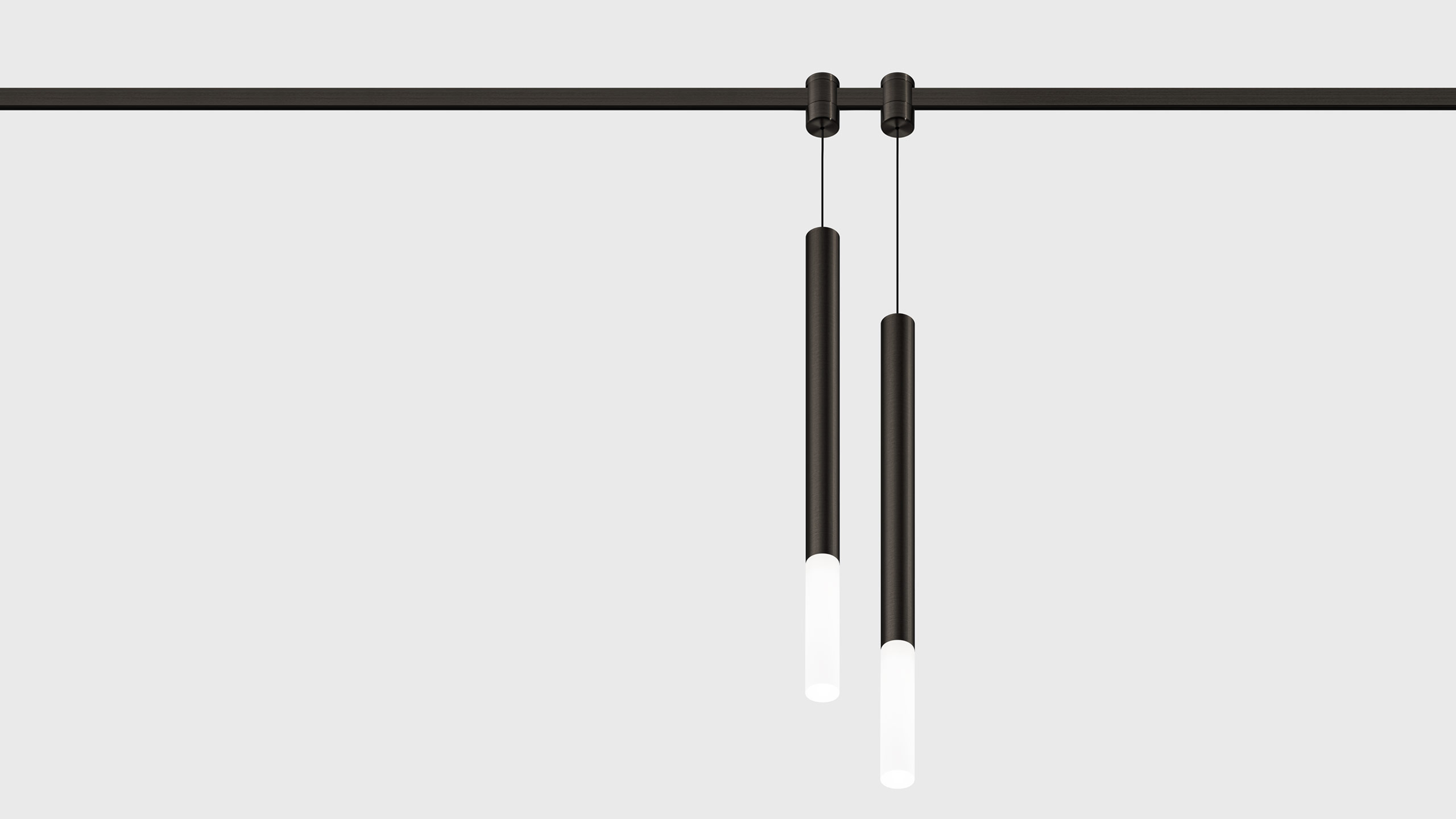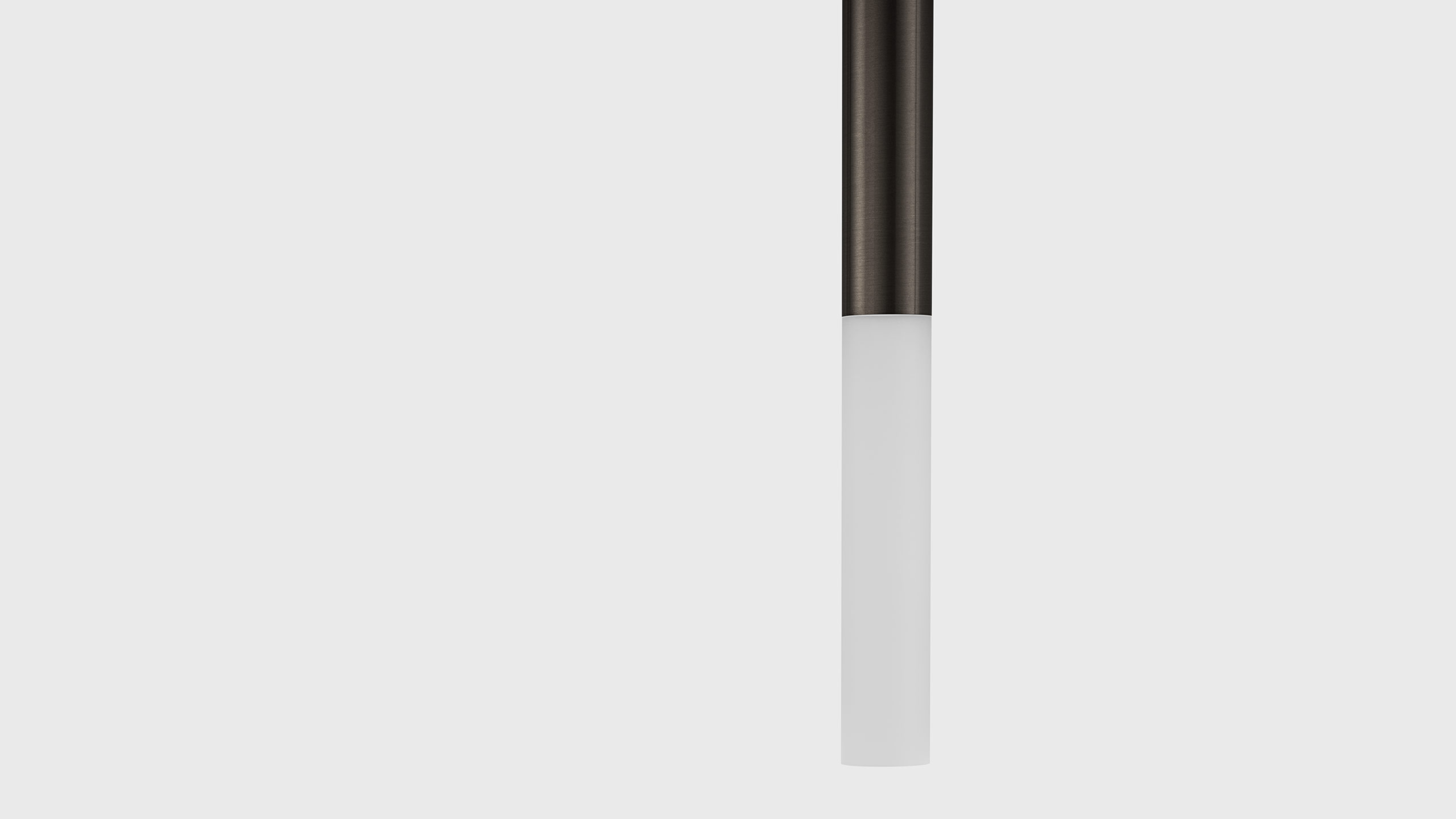 Miniature pendant track luminaire with a diffusing decorative cover. Made of pure brass. Just 30 mm in diameter. Narrow 24° beam angle allows to create lighting accents.