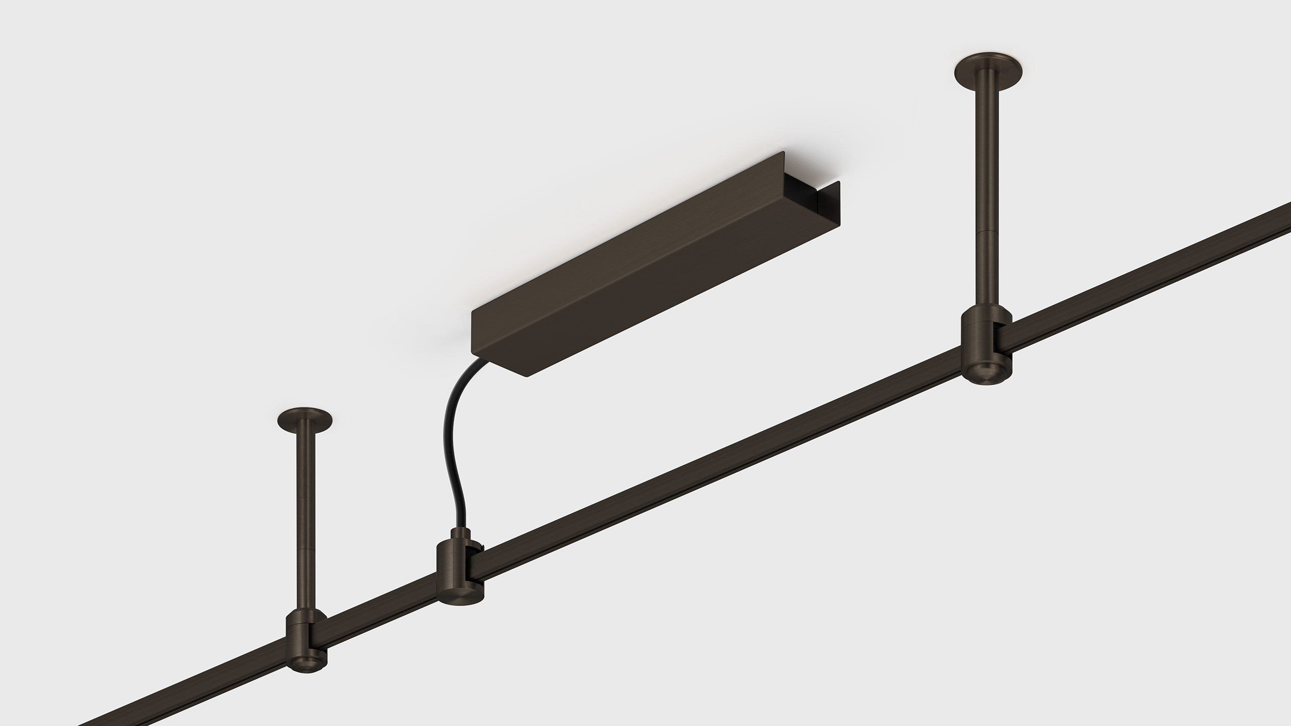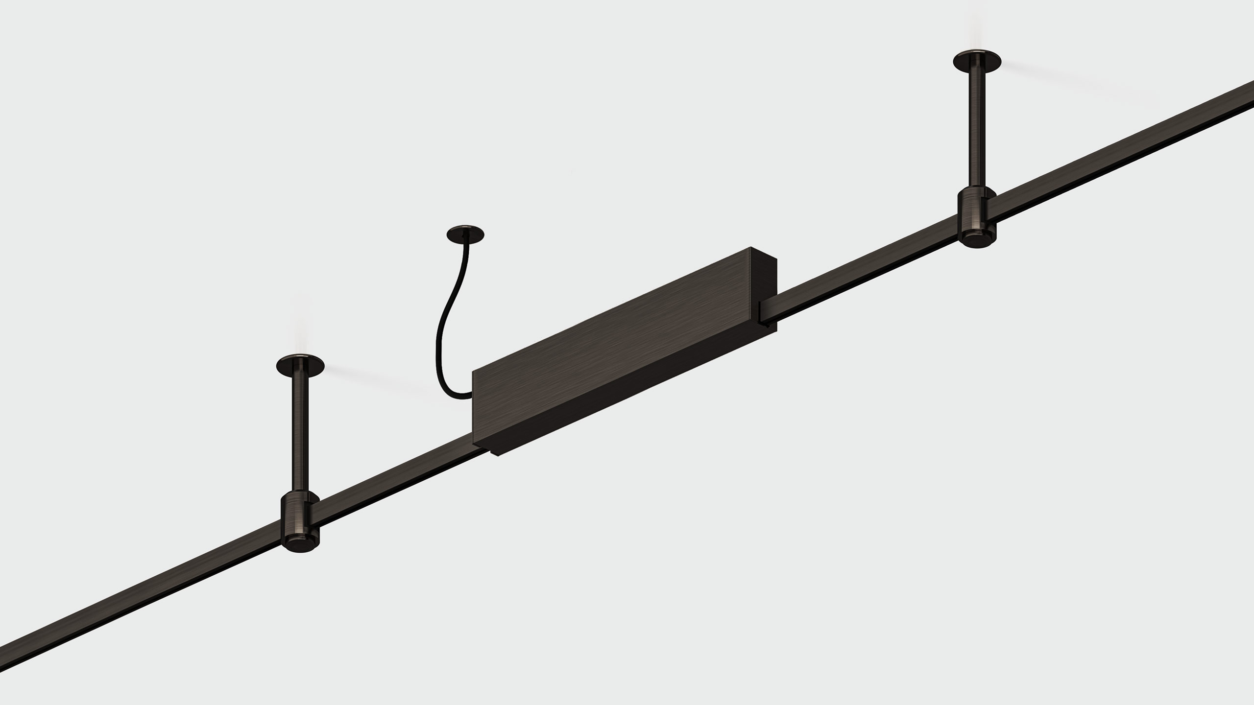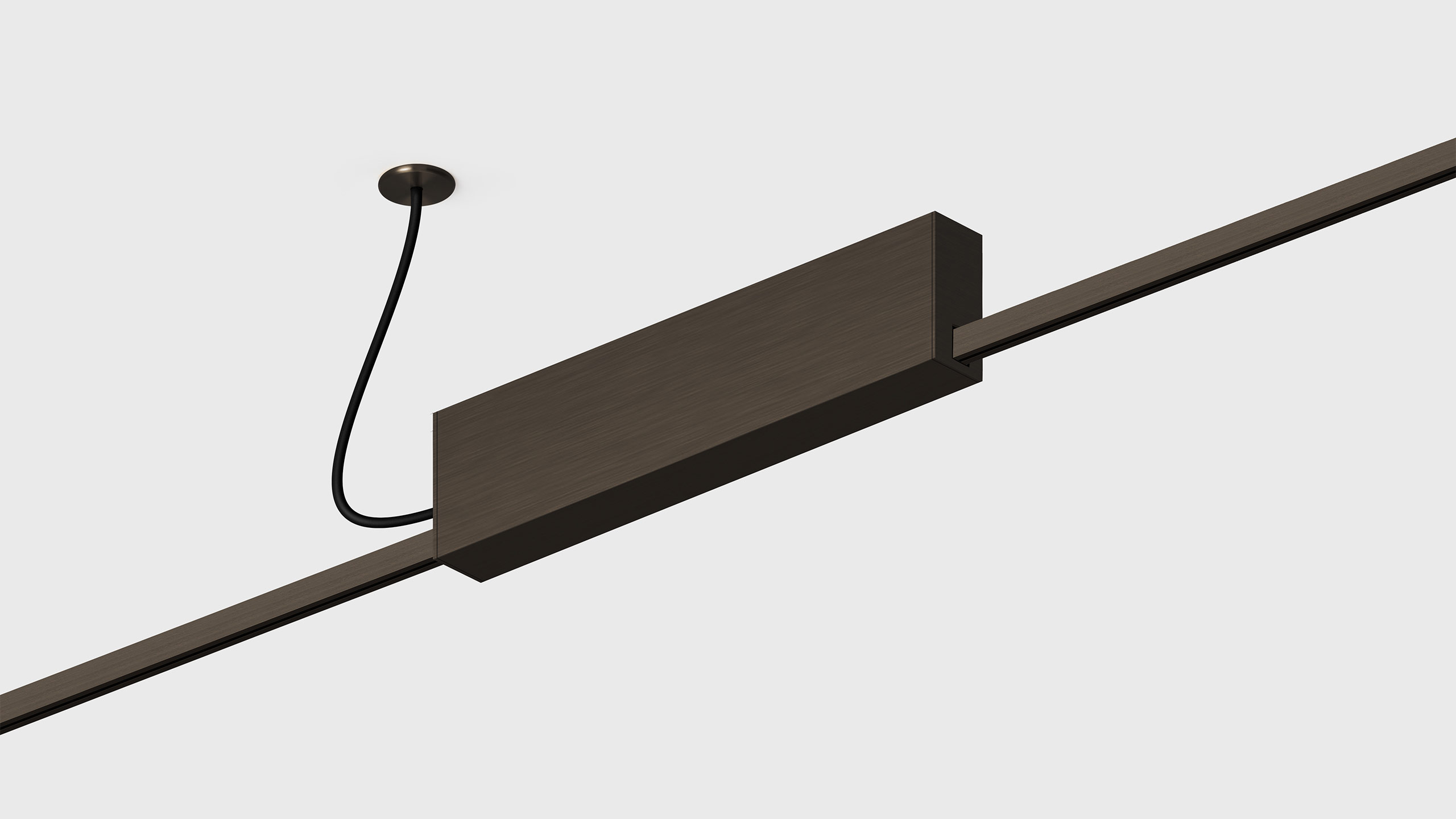 Power source is inside the pure brass housing. Installation on brass rail. Total capacity of the luminaries that can be connected to this power source should not exceed 200 Watt, depending on the model you choose.