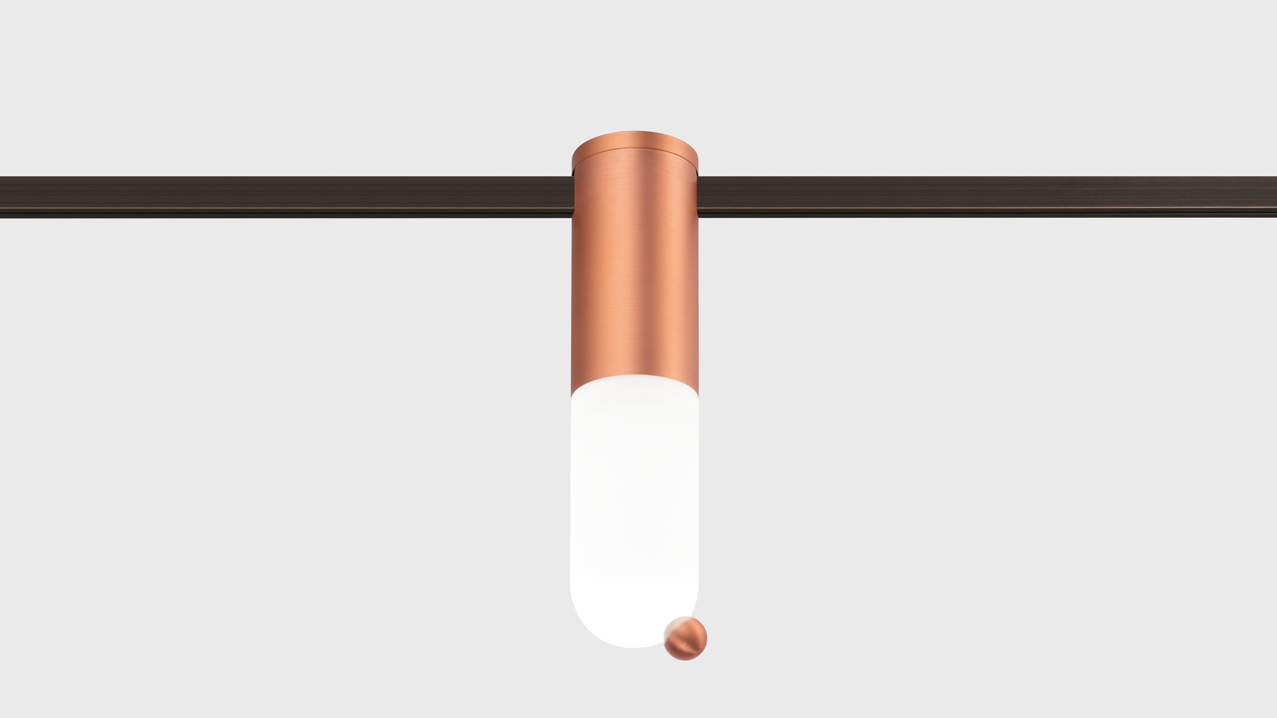 Capsule luminaire with 200 mm height and a small sphere on the light source for AUROOM system created by Centrsvet in collaboration with a world-renown Russian designer Dima Loginoff.