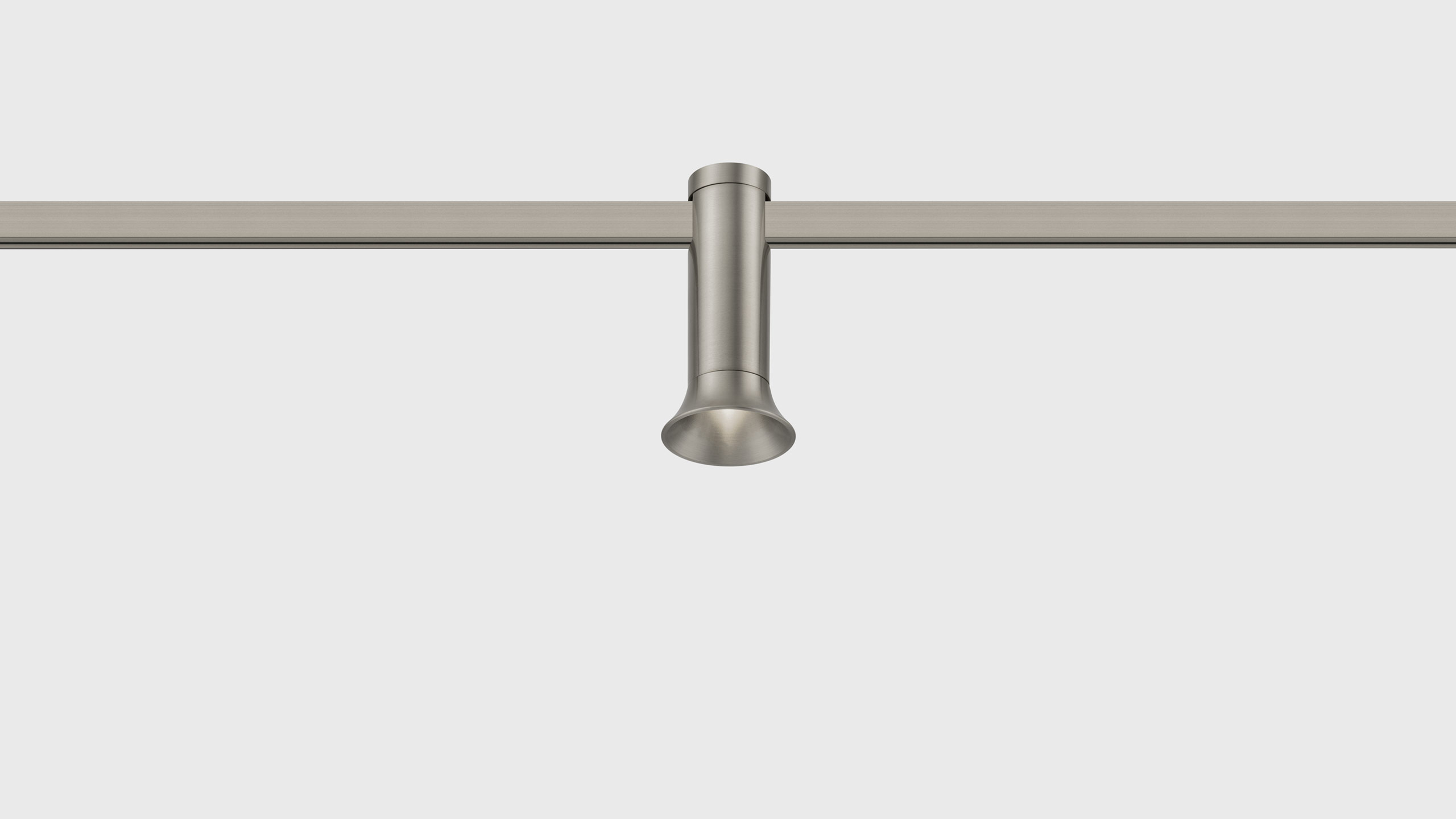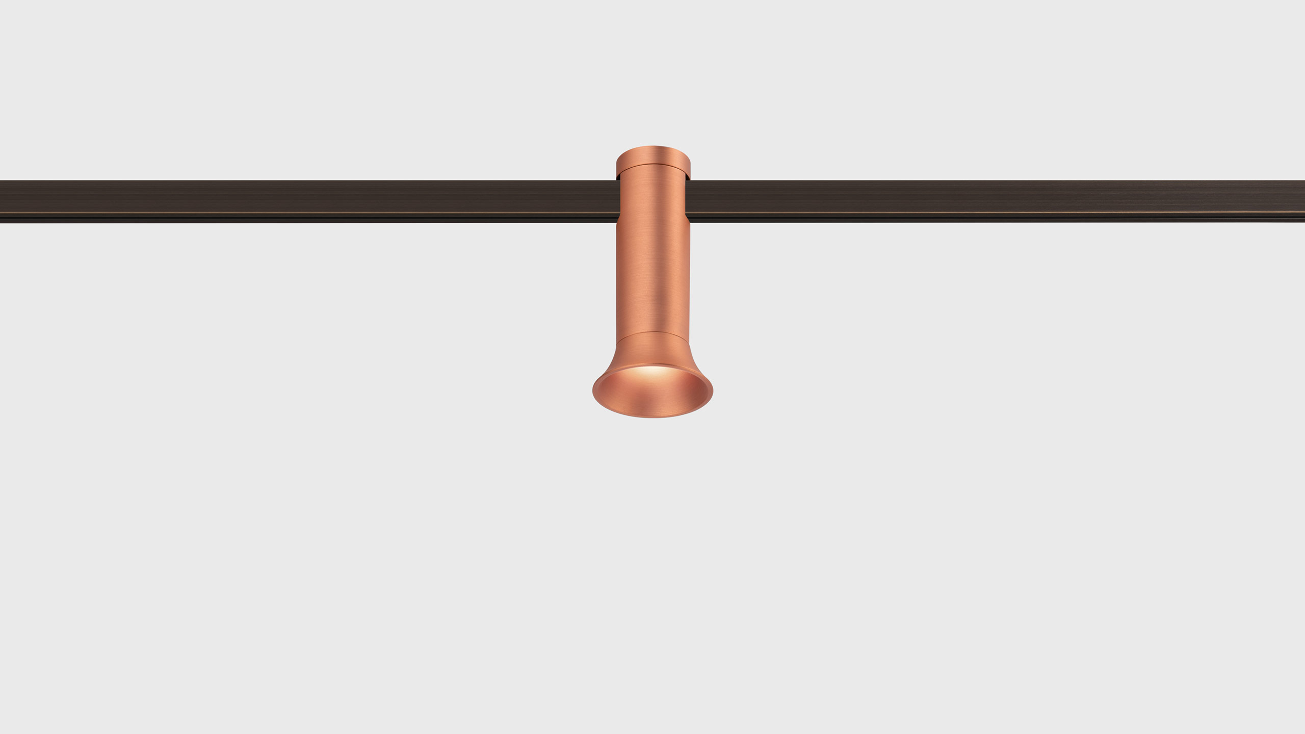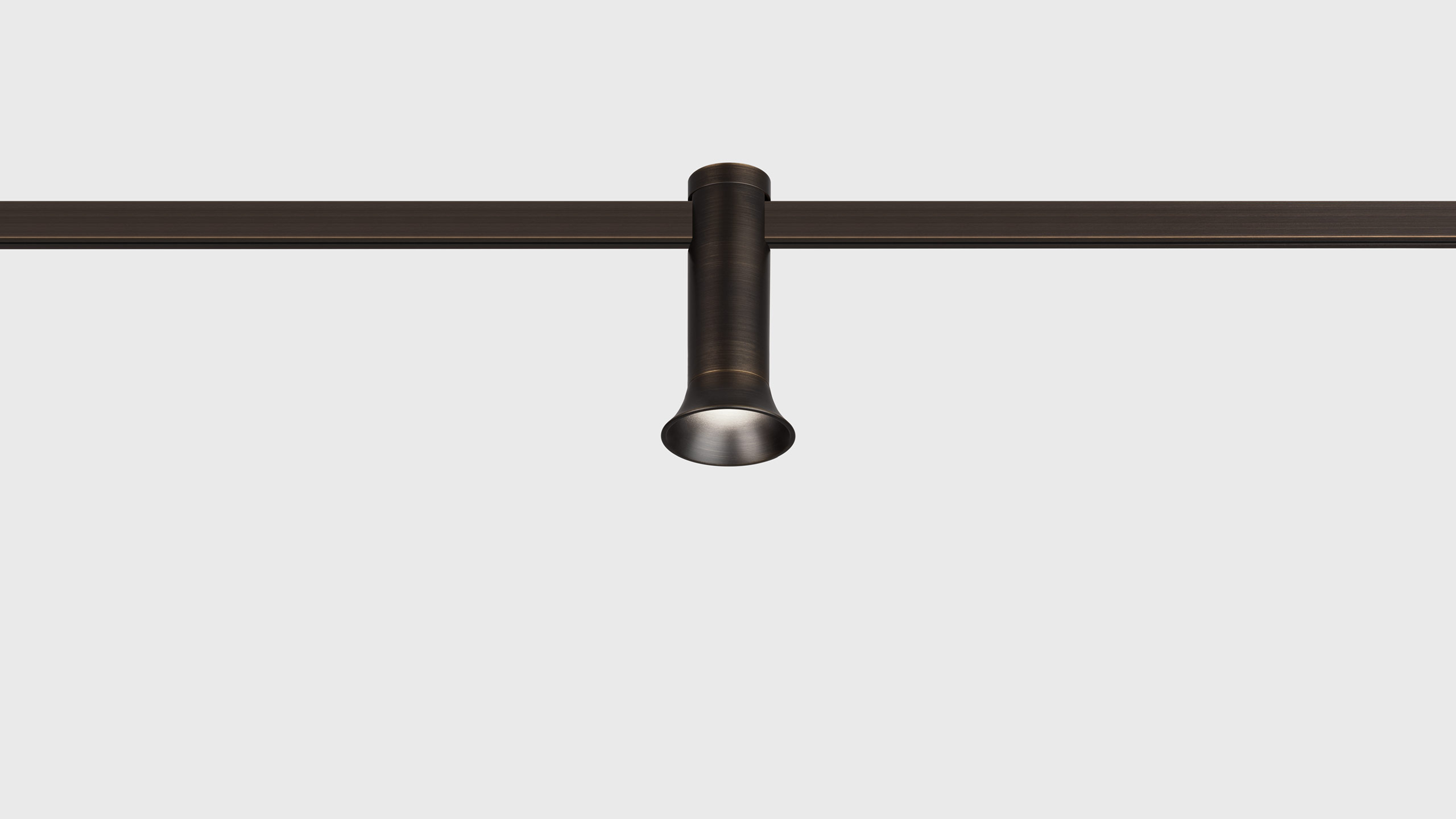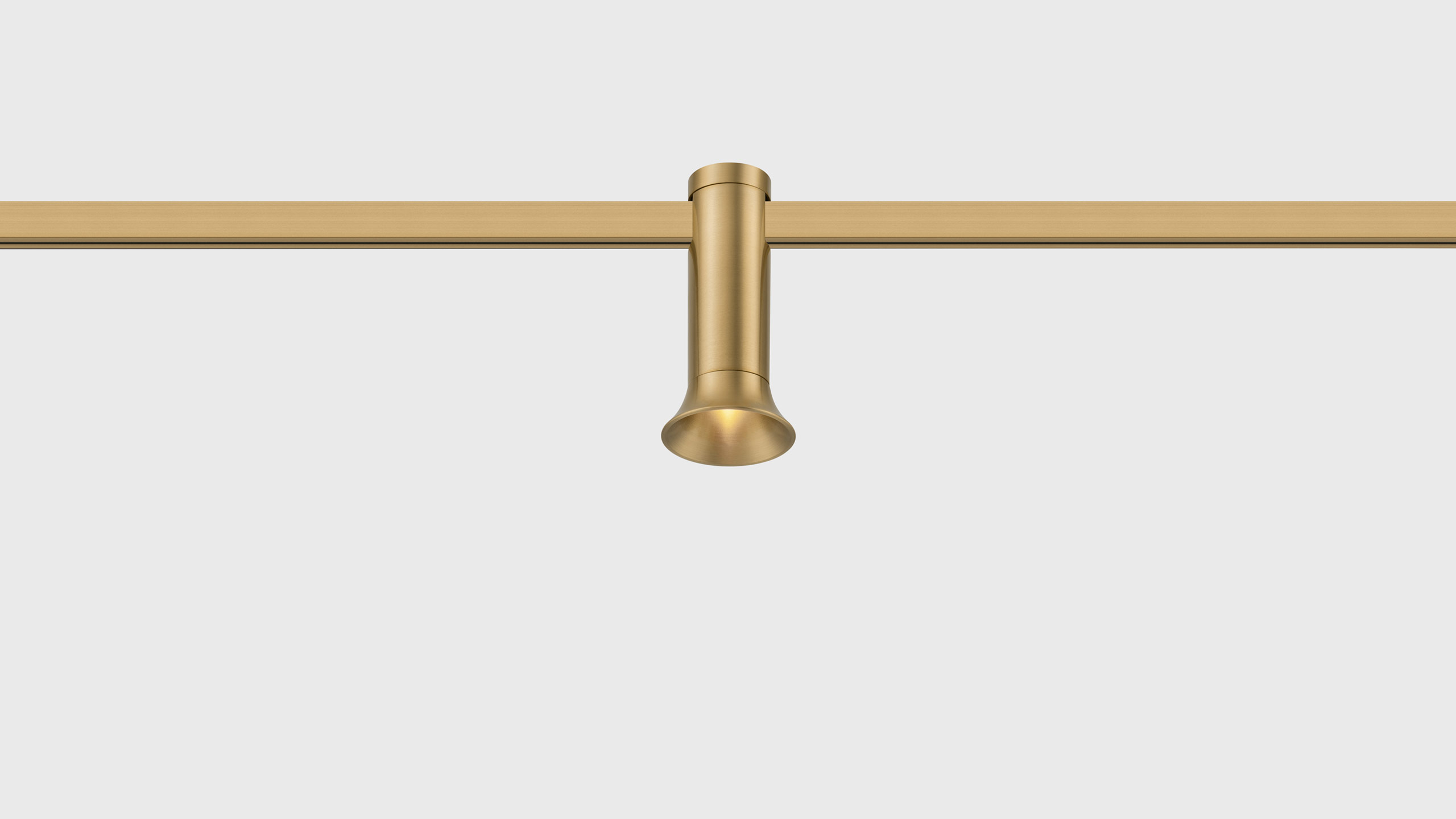 The luminaire is made of black brass for installation onto the rail. Produces directional lighting. The cover and recessed positioning of the light source provides comfortable lighting. 48V connection.