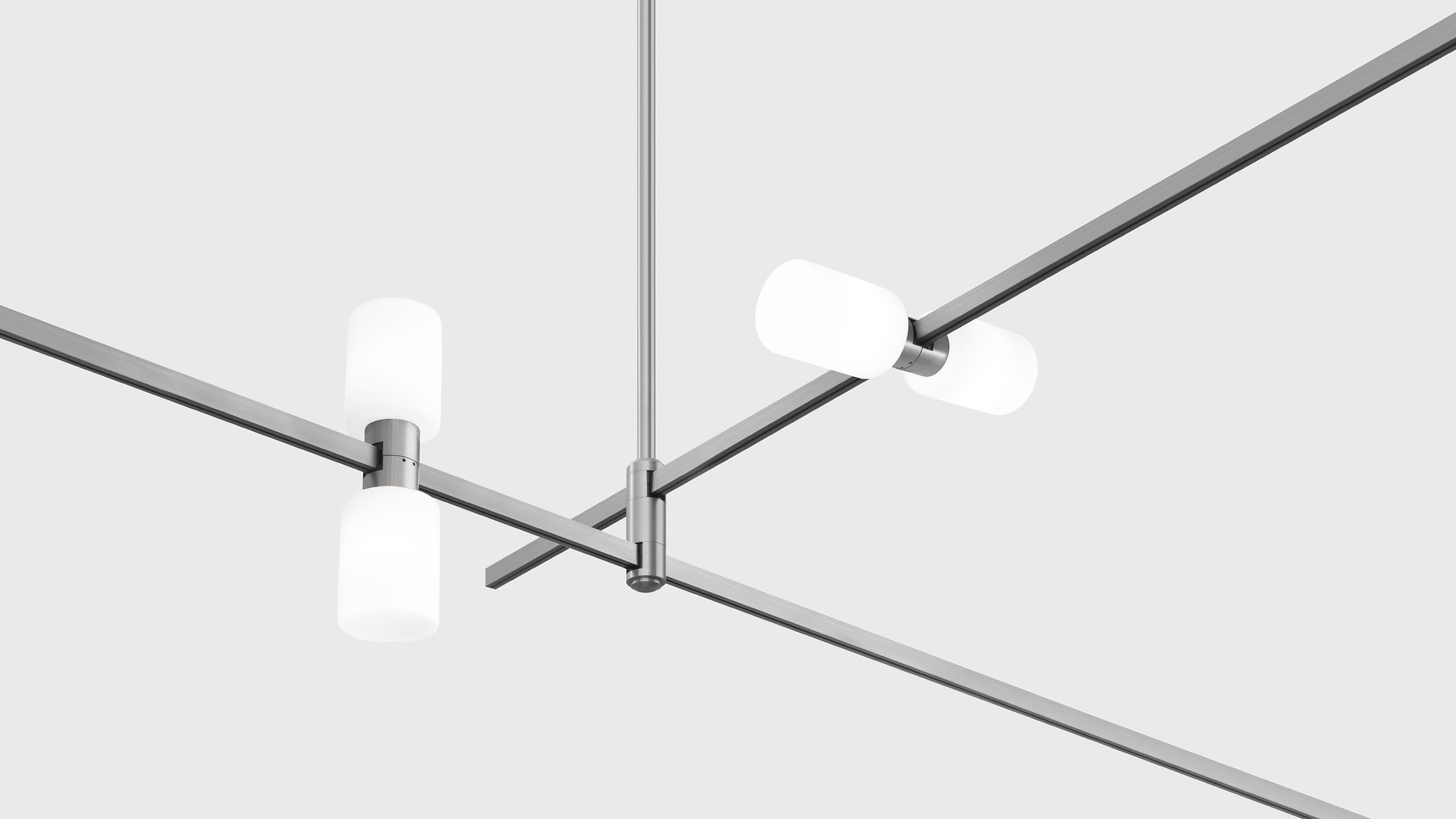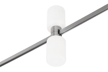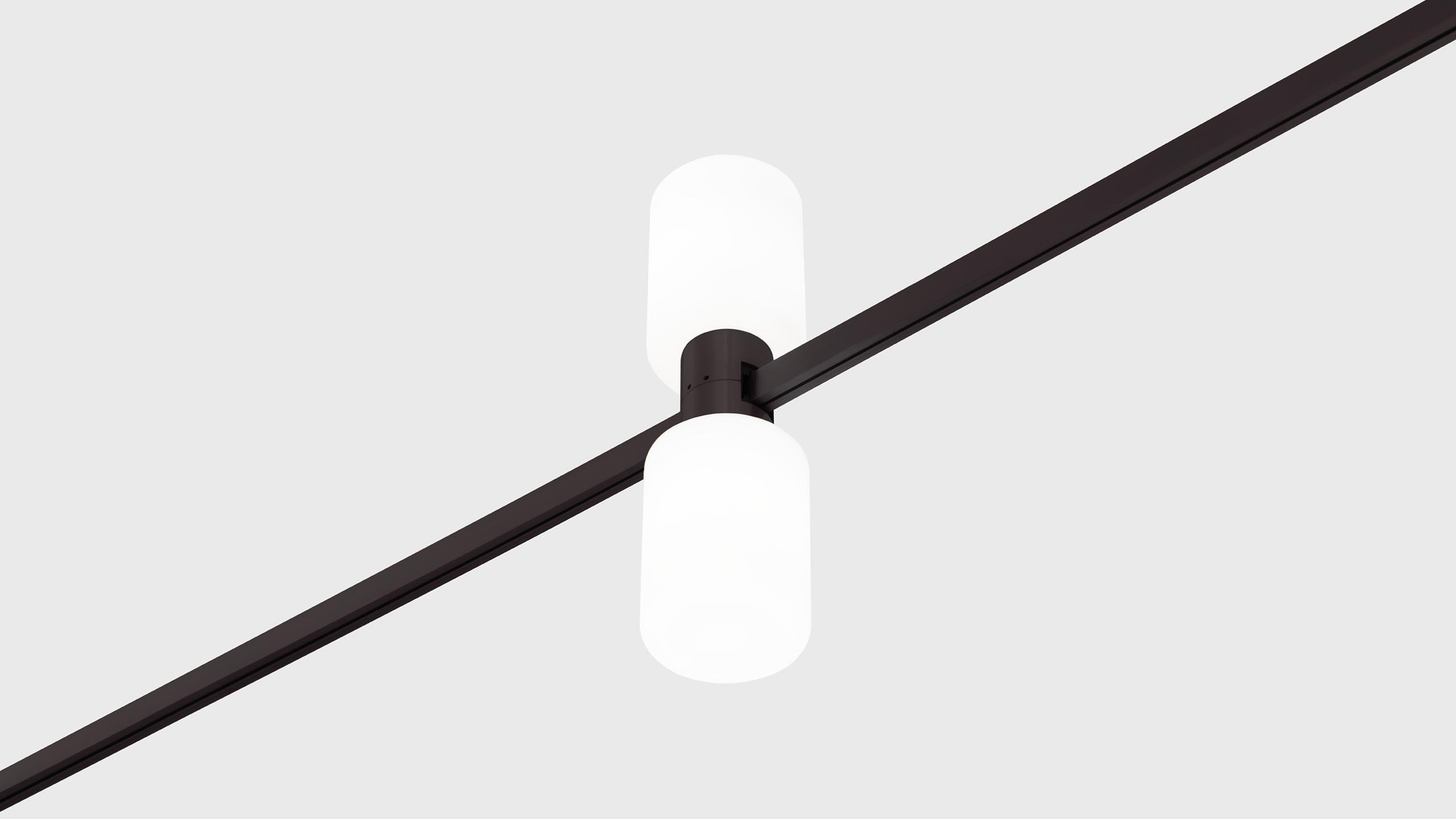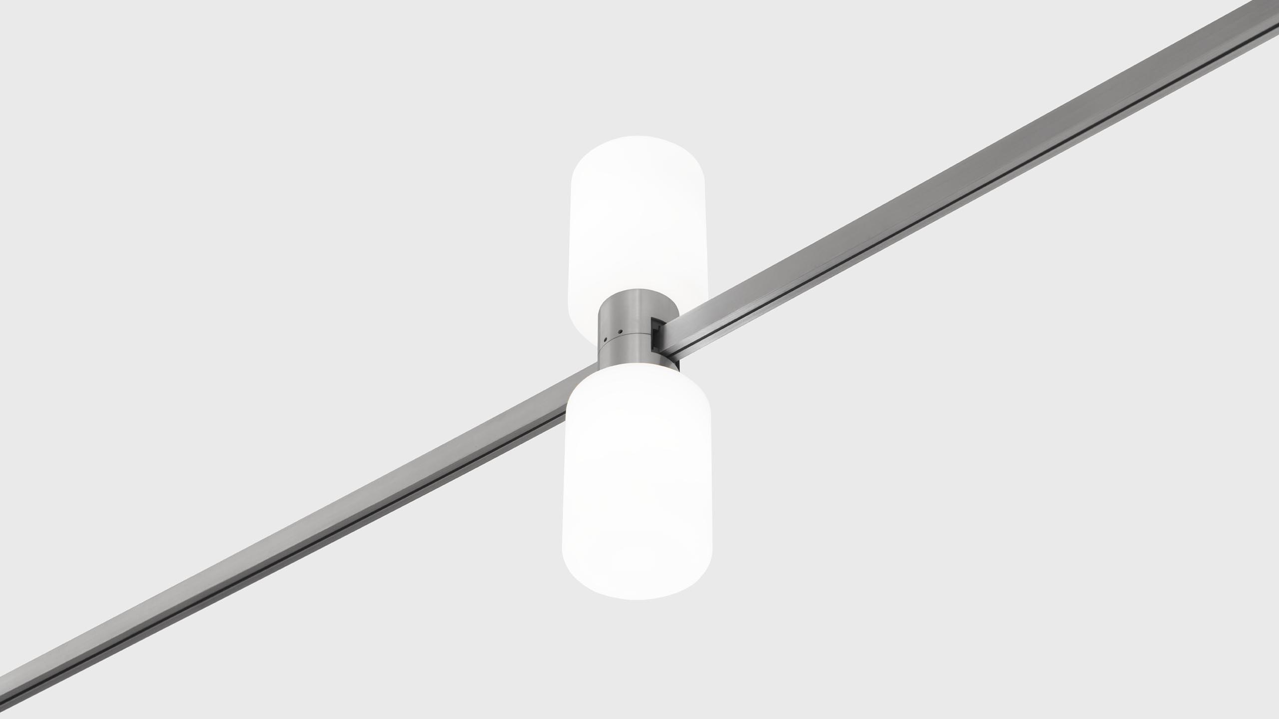 Luminaire with 2 cylindrical light sources and matte diffusers for AUROOM track.
