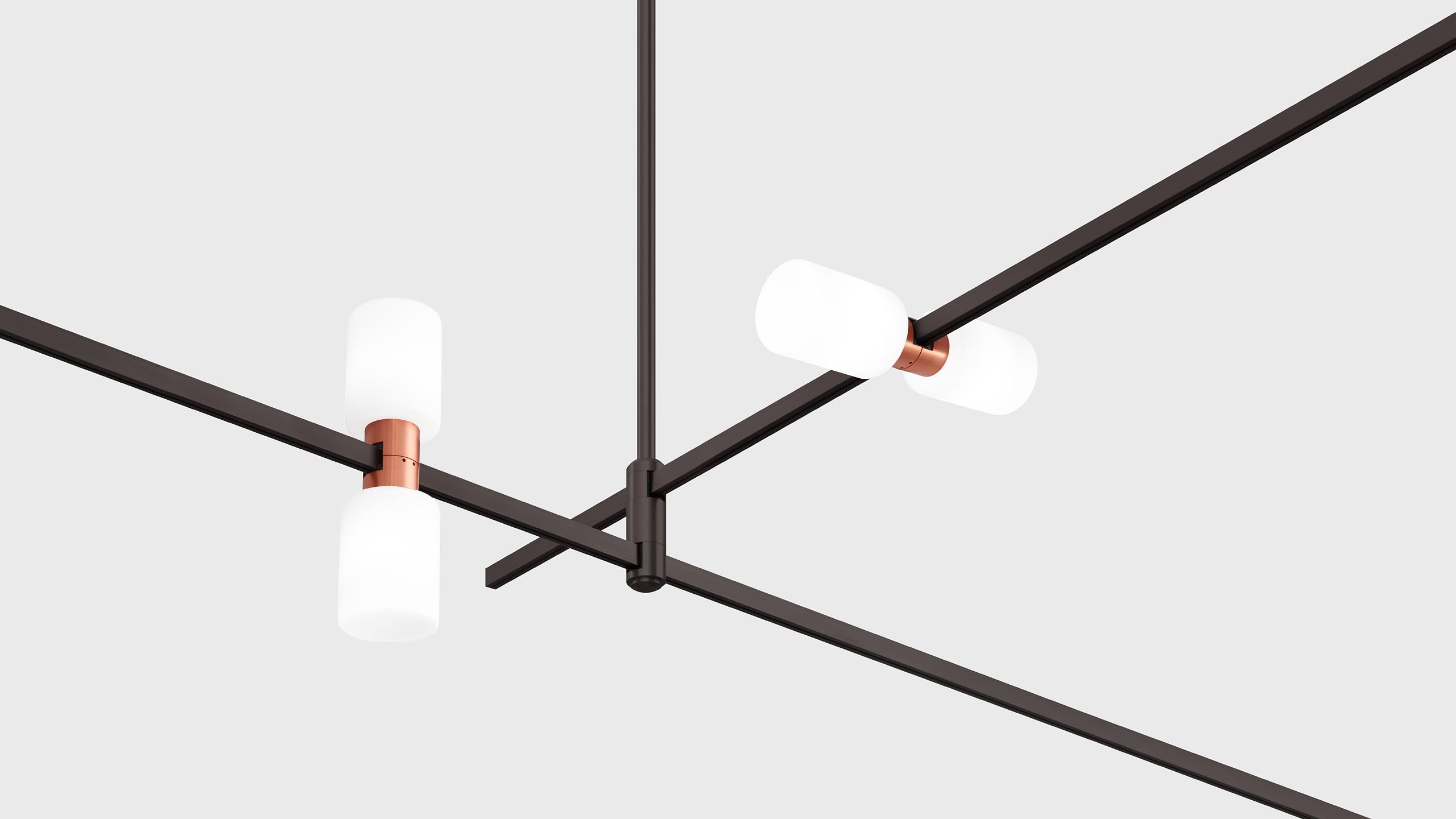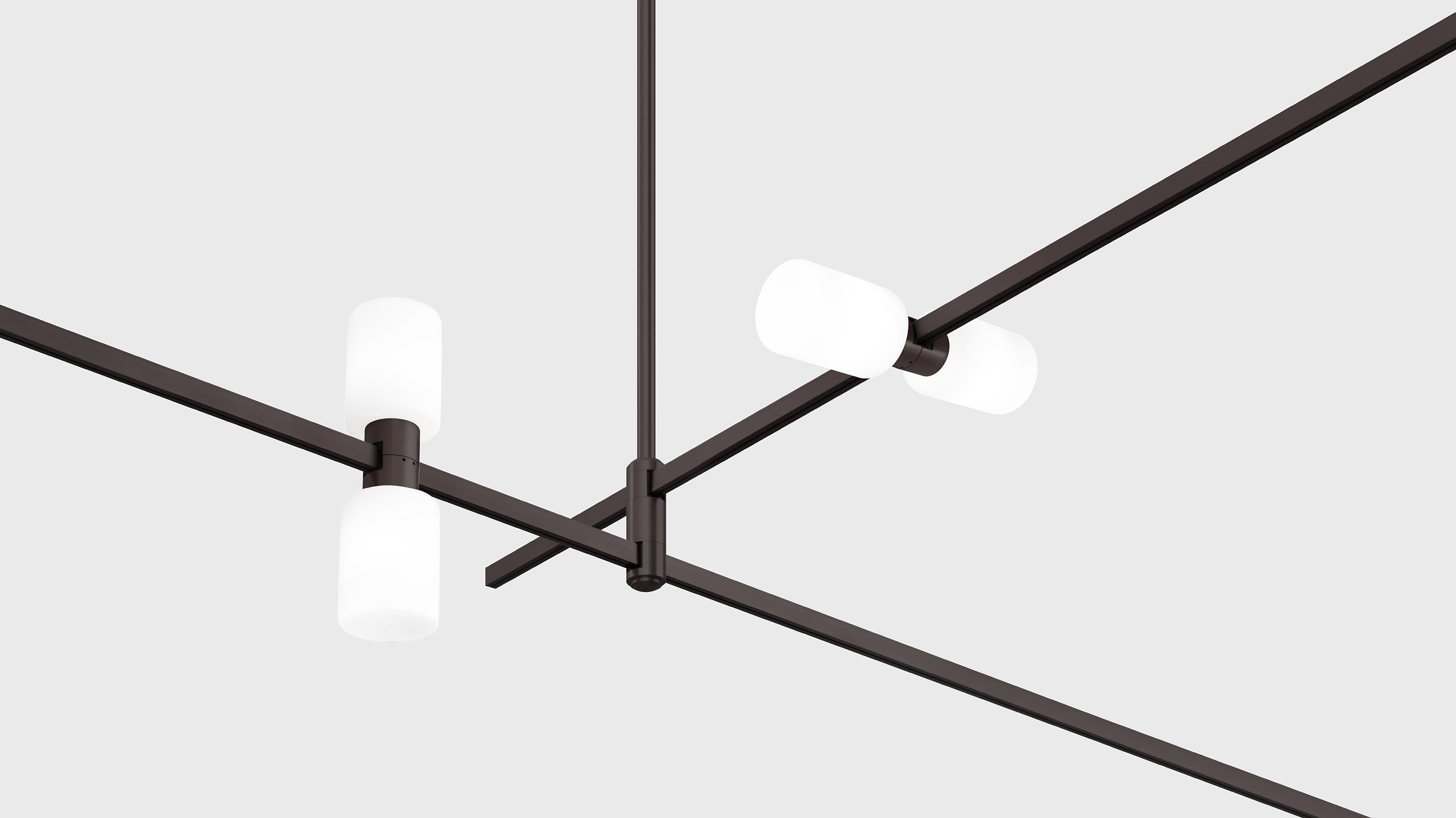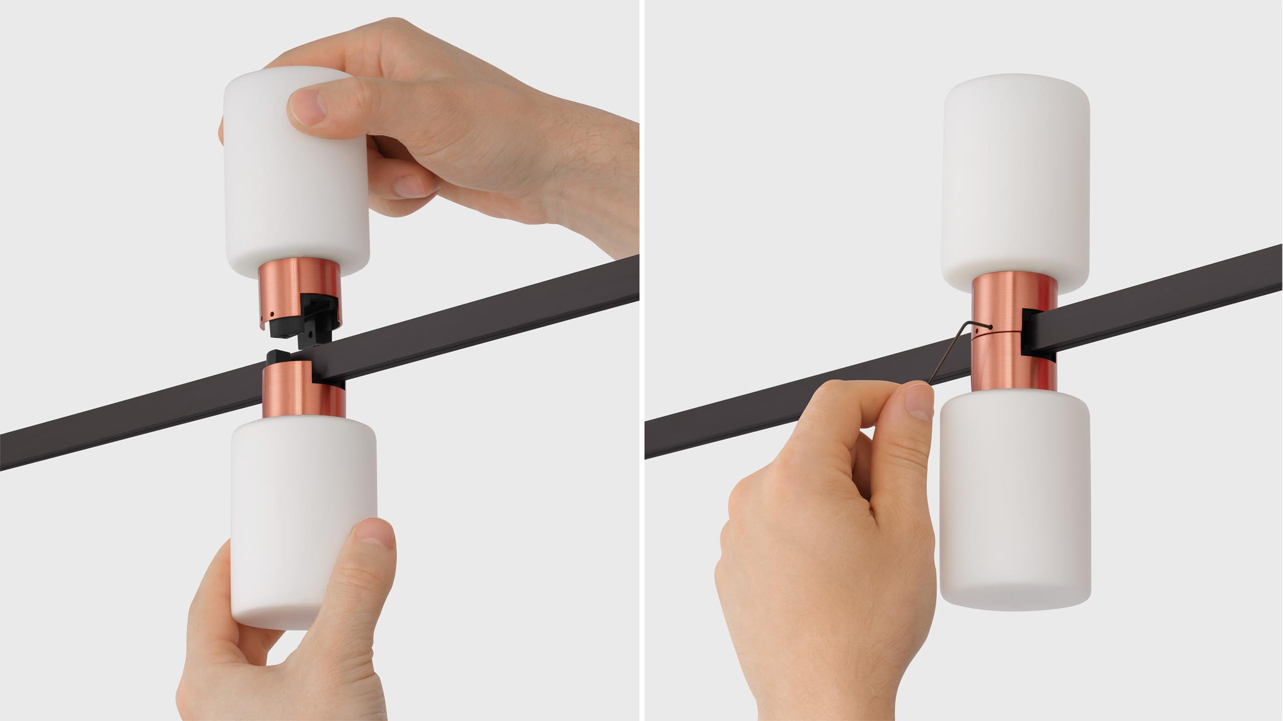 Luminaire with 2 cylindrical light sources and matte diffusers for AUROOM track.