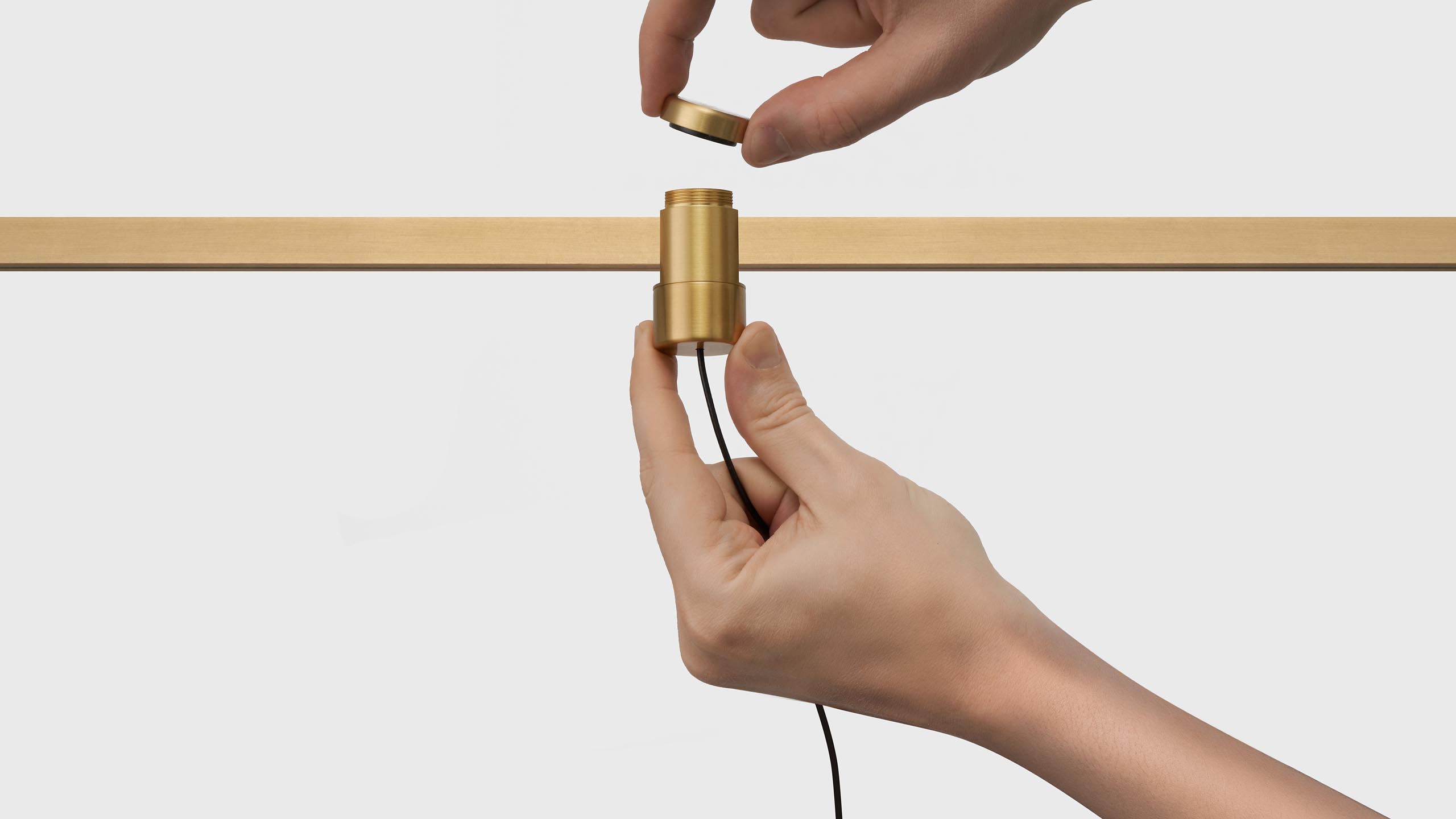 The luminaire’s fastener is made of 100% brass in black, gold, silver and pink shades.