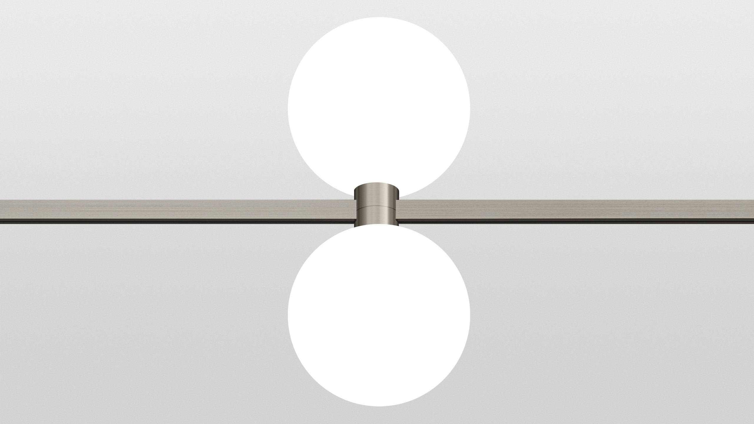 Luminaire with 2 spherical light sources, 140 mm diameter and matte diffusers for AUROOM track.