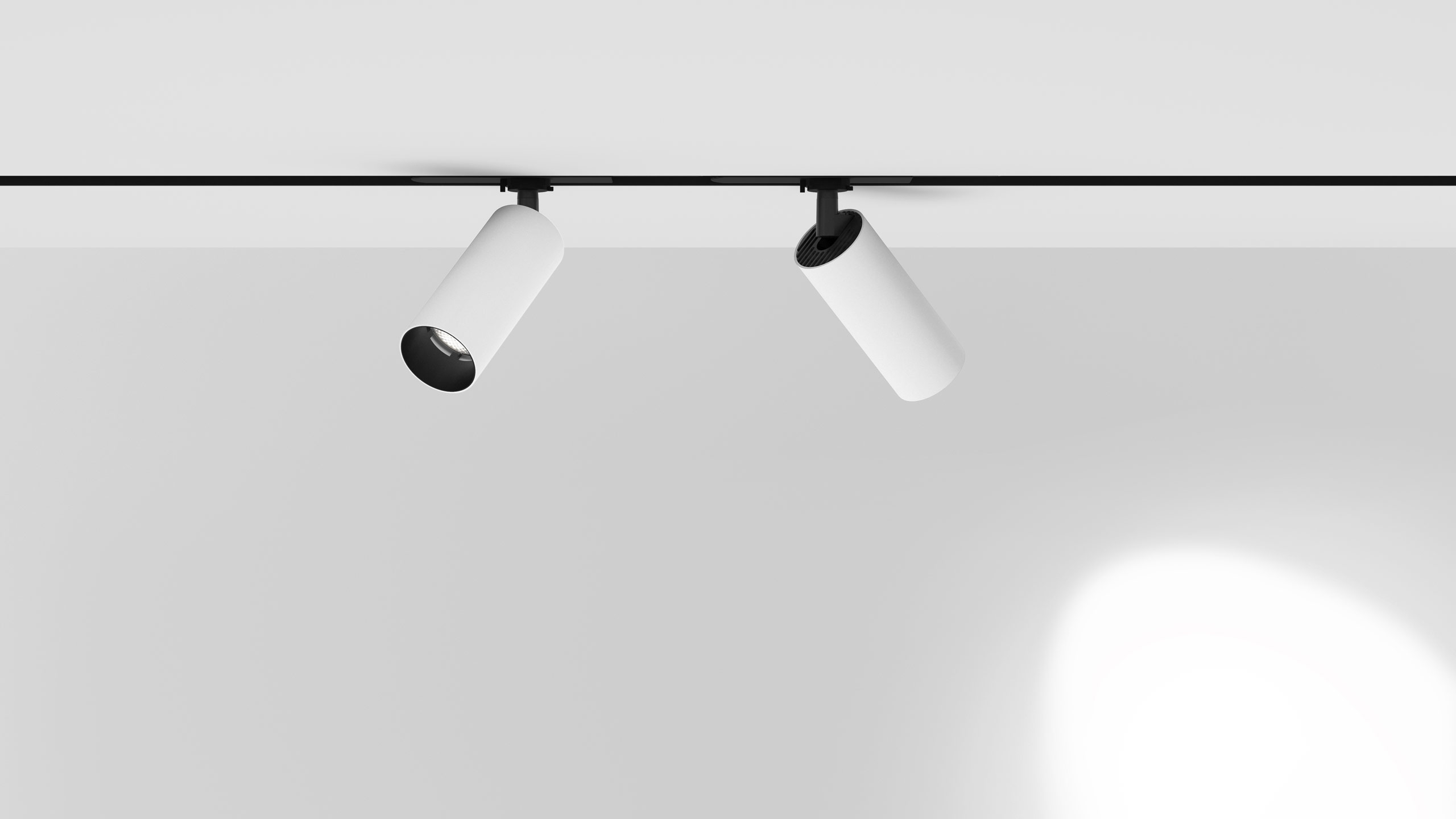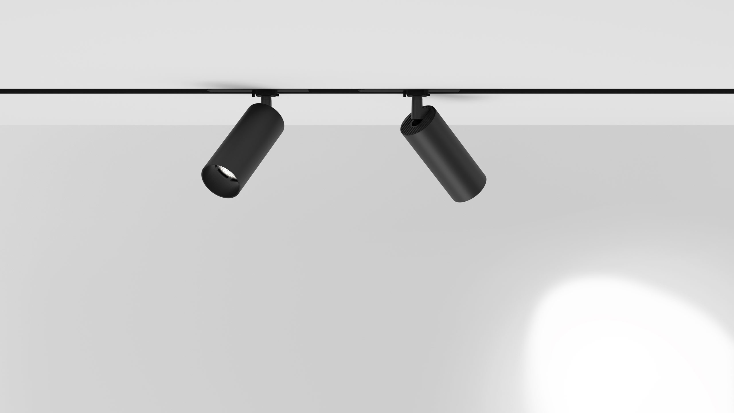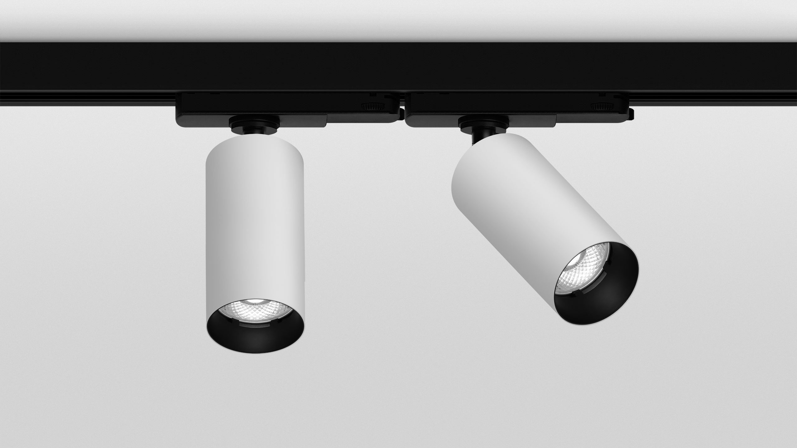 Rotatable luminaire with 18 W capacity with an ultra-thin 2 mm housing brim for EUROTRACK. Produces directional lighting.