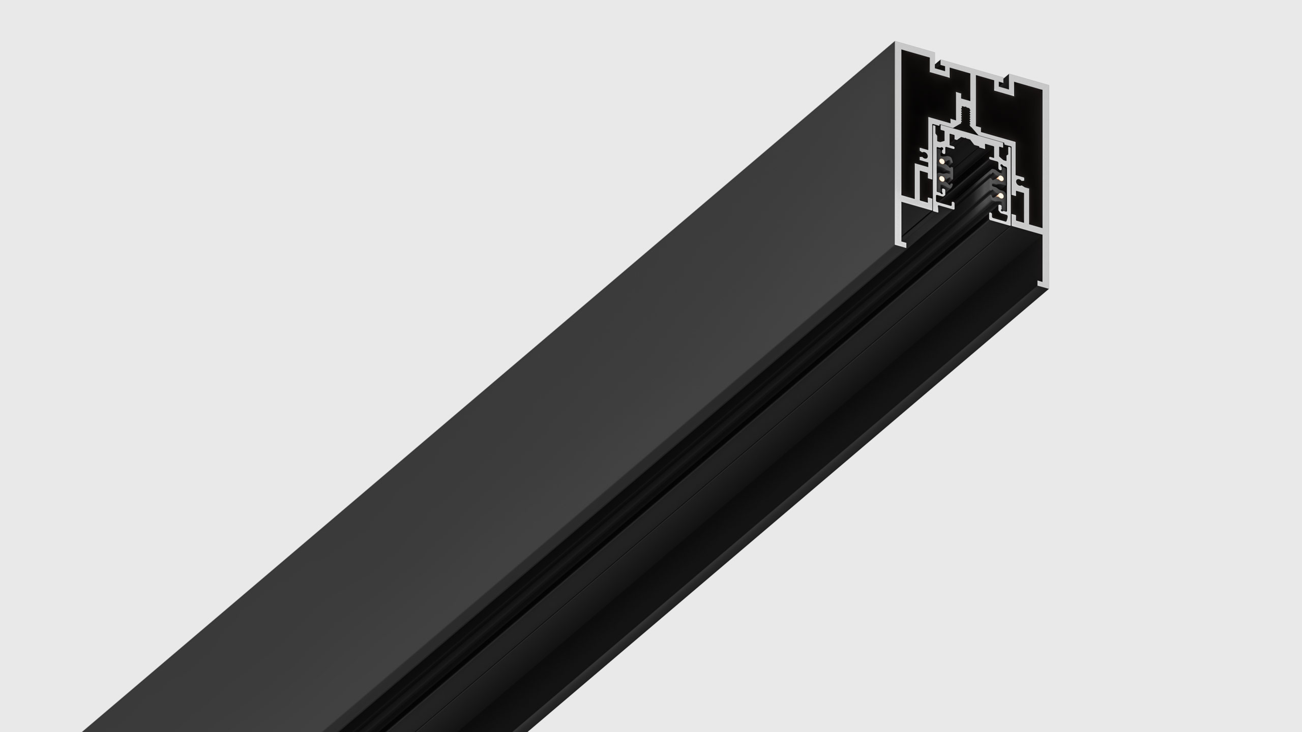 Surface-mounted channel for recessed installation of the track, which allows to conceal the adapter of the luminaire. Track can be cut off anywhere.