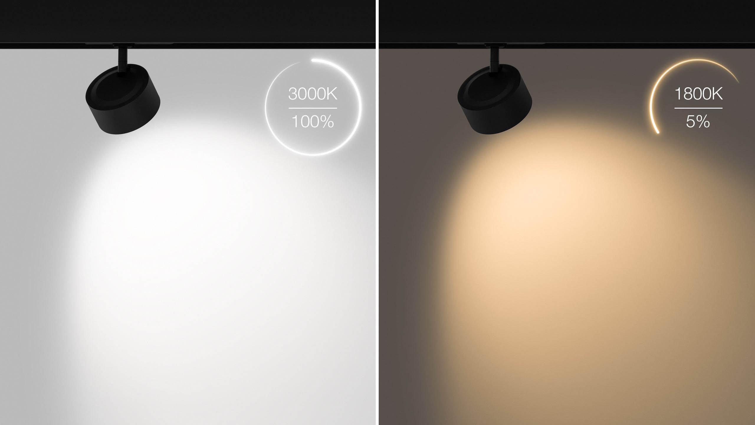 Dim-to-Warm (DTW) dimming feature changes CCT from 3000K at 100% brightness to 1800K at 5%.