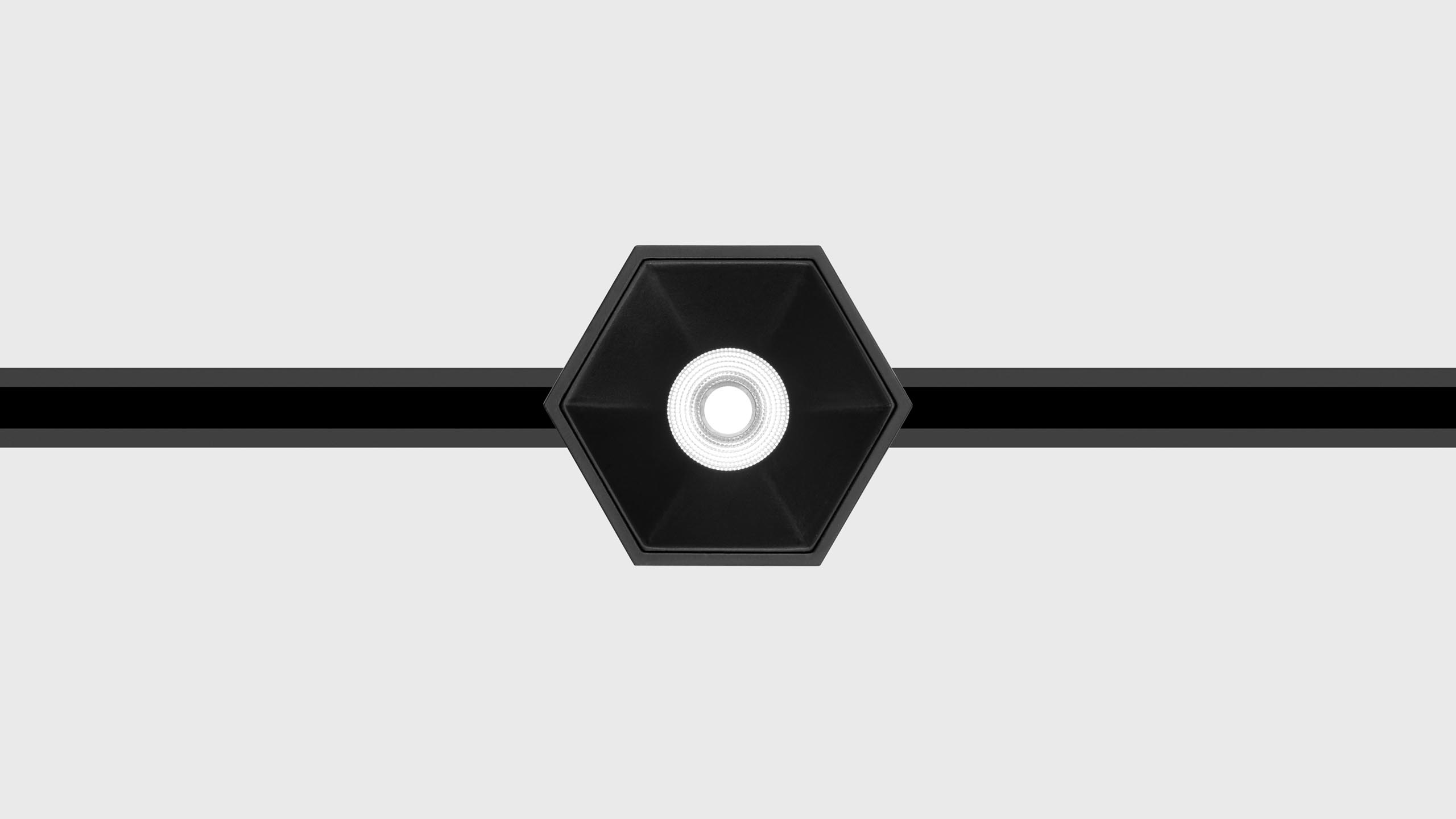 Hexagonal luminaire for accent lighting with recessed light source.