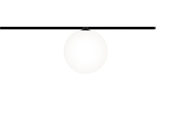 Ball-shaped track luminaire with matte diffuser and wide beam angle.