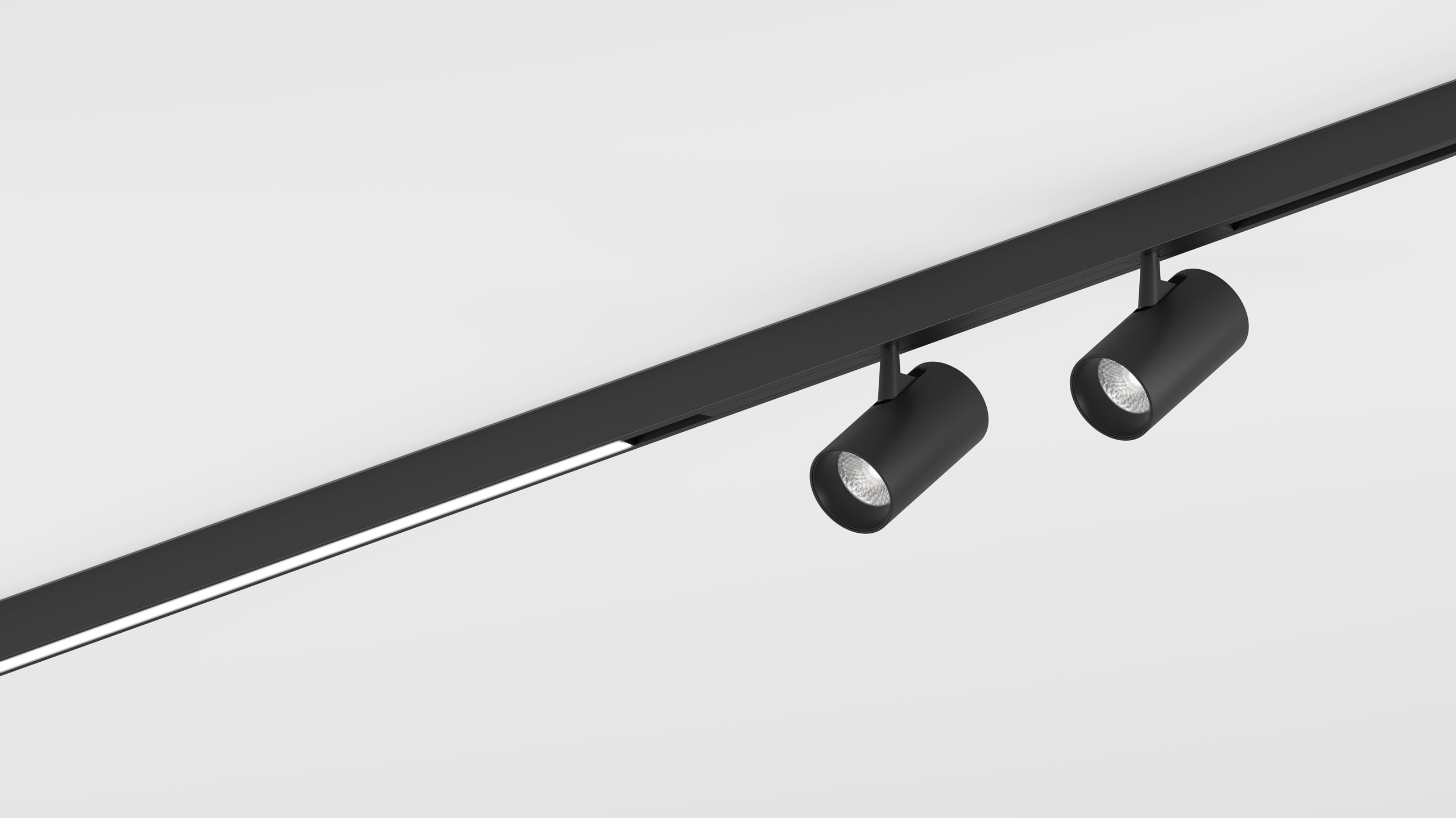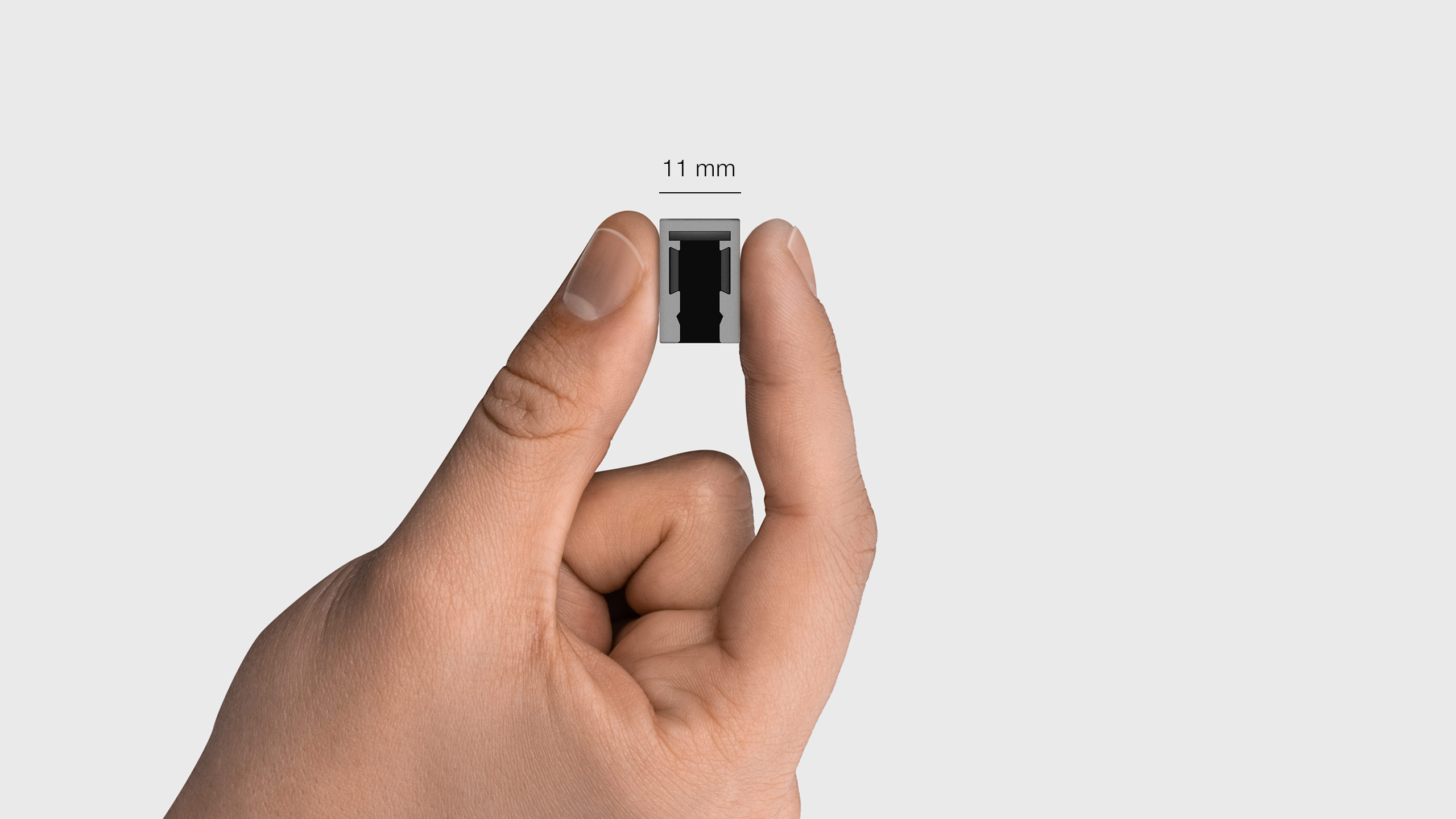Compact surface-mounted track system with calibrated proportions (11 by 17 mm).