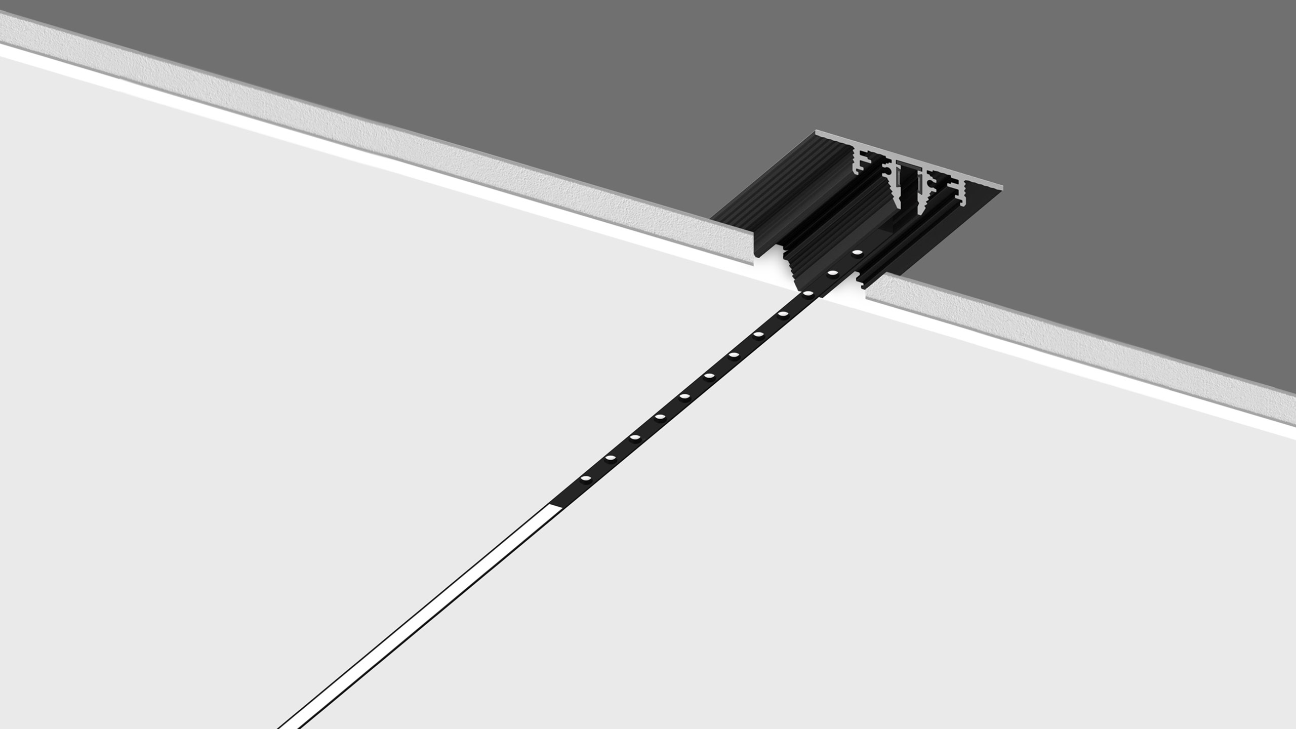 The system looks like an elegant slim line on the ceiling, 18 mm mounting depth.